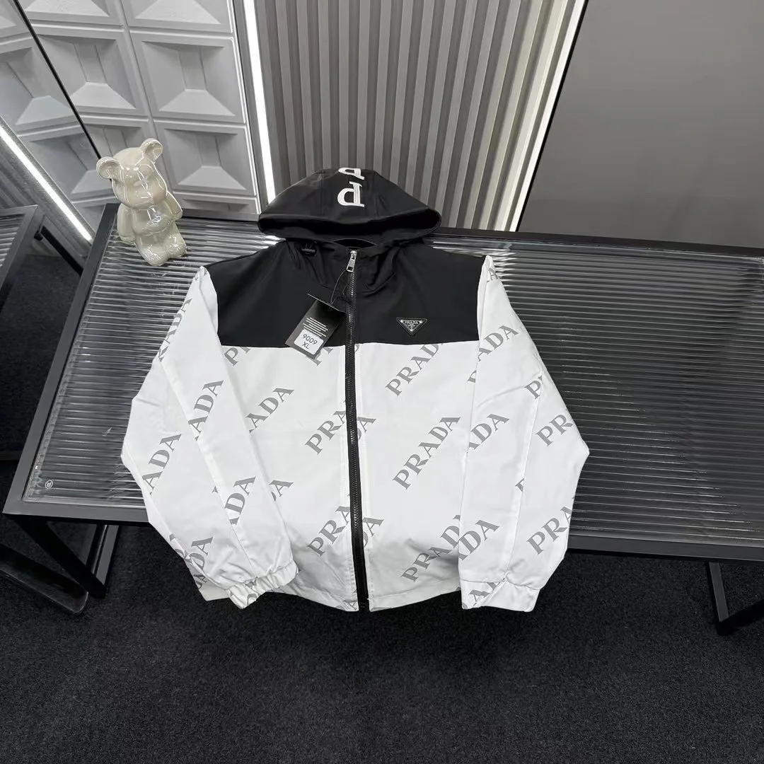 Hochwertige Prada Jacken Weiße Logo Kollektion