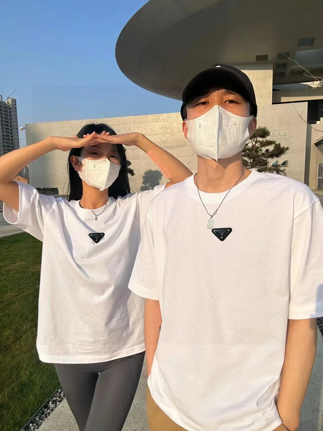 Passende Kurzarmhemden der Prada-Serie mit Lederpatches im Konterdruck für Damen und Herren.