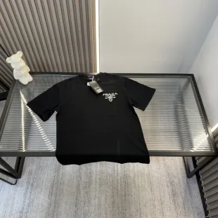 Kurzarmhemd mit Prada-Logo-Stickerei in zwei Farben.