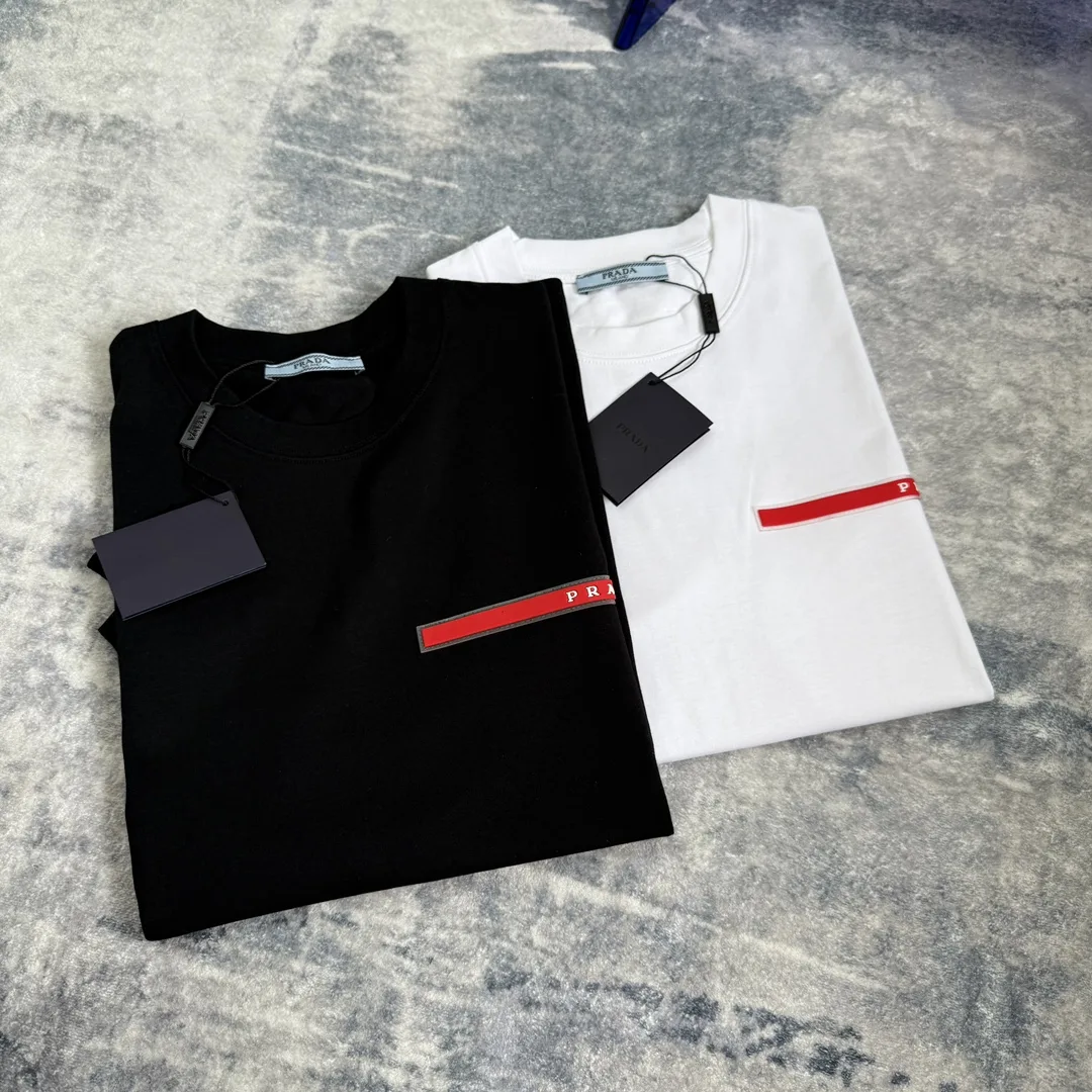 Prada PRD SS Basic Loose Casual Red Silicone Kurzarm-T-Shirt für Paare