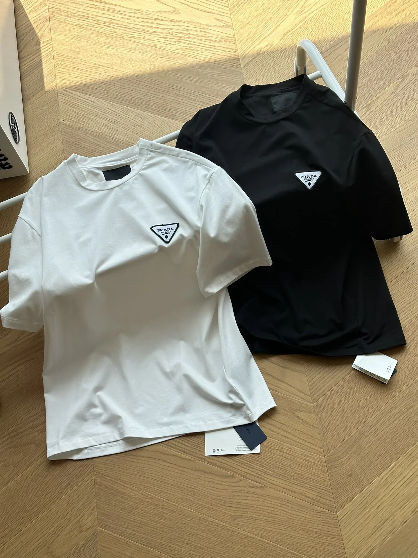 Brandneues Prada Kurzarm-T-Shirt mit geprägtem Dreieck-Logo.