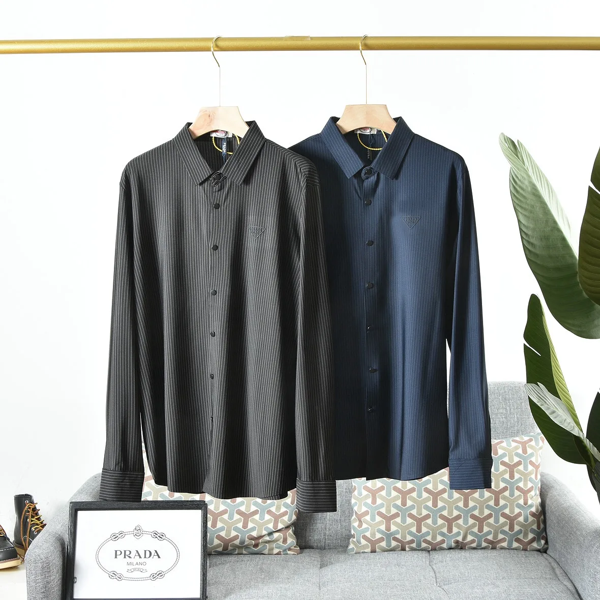 Dieses Hemd harmoniert perfekt mit der Ästhetik der Marke und greift das geprägte, umgedrehte Dreieck auf der Brust auf, das das Prada-Logo perfekt aufgreift und eine einzigartige und innovative Interpretation schafft. Das Muster ist mit geprägten Details auf der Brust verziert und setzt so ein nahtloses und unverwechselbares Statement. Es ist ein Signature-Stück, das die Identität der Marke perfekt widerspiegelt!
