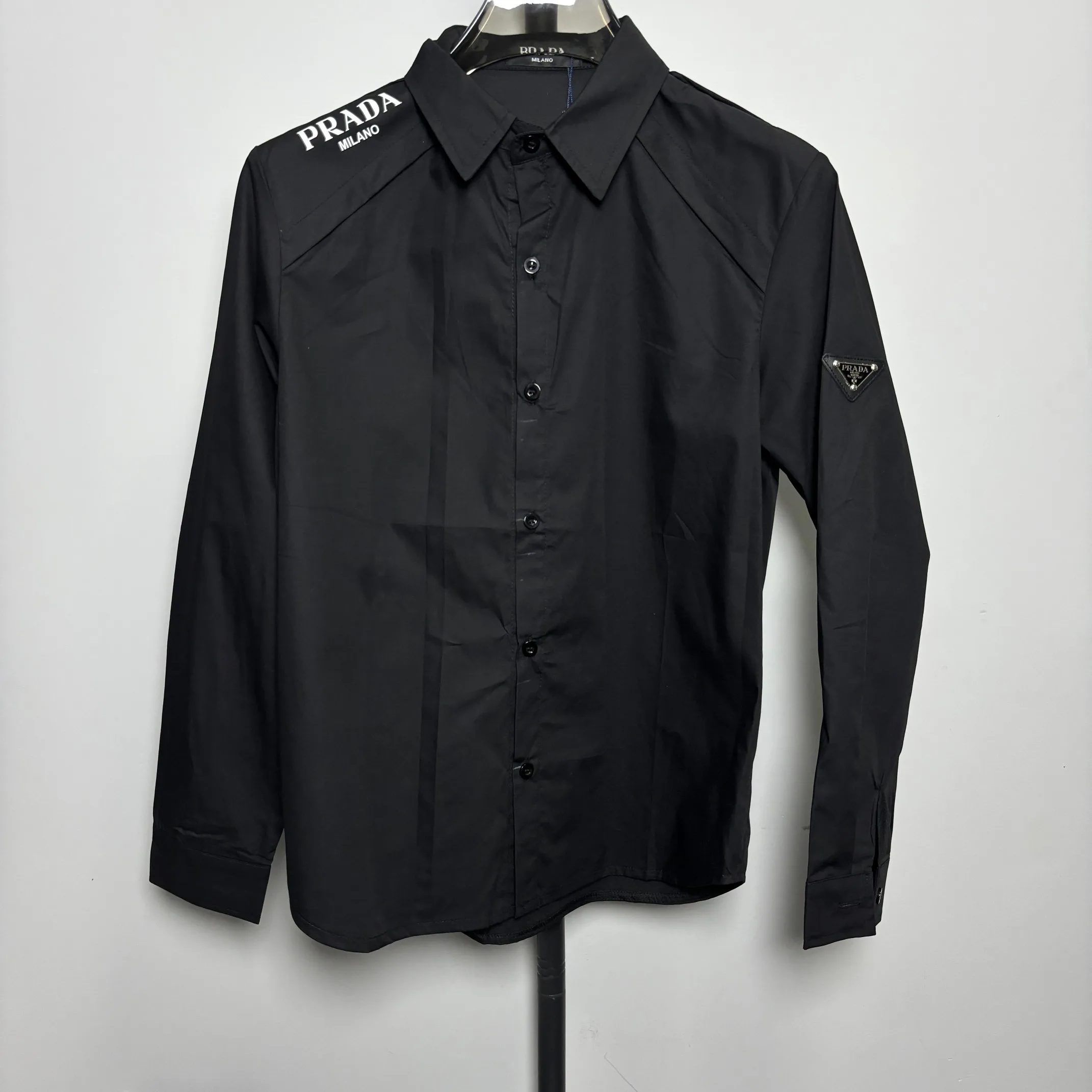 Dieses neue, klassische Prada-Langarmhemd mit kleinem Logo für lässige Paare besteht aus glatter, reiner Baumwolle und bietet so ein angenehmes Tragegefühl. Die Herstellung des maßgeschneiderten, karierten Hemdes ist zeitaufwändig und kostspielig. Der ausdrucksstarke, dreidimensional wirkende Allover-Print sorgt für einen trendigen und modischen Look. Es eignet sich perfekt für Ober- und Unterwäsche und ist für Damen und Herren erhältlich!