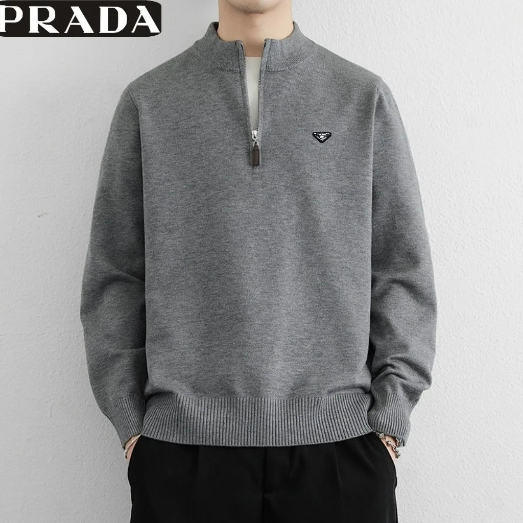 Die neue Herbstkollektion von Prada umfasst einen vielseitigen, hochwertigen, unifarbenen Pullover mit halbem Reißverschluss und kleinem Stehkragen für Damen und Herren. Design und Stoffauswahl wurden sorgfältig ausgewählt, um Weichheit, Tragekomfort, Knitterfestigkeit und Langlebigkeit zu gewährleisten. Die Qualität ist sofort spürbar! Ein absoluter Kauftipp! Der Pullover ist nicht nur schön, sondern auch unglaublich praktisch! Schaut ihn euch an!
