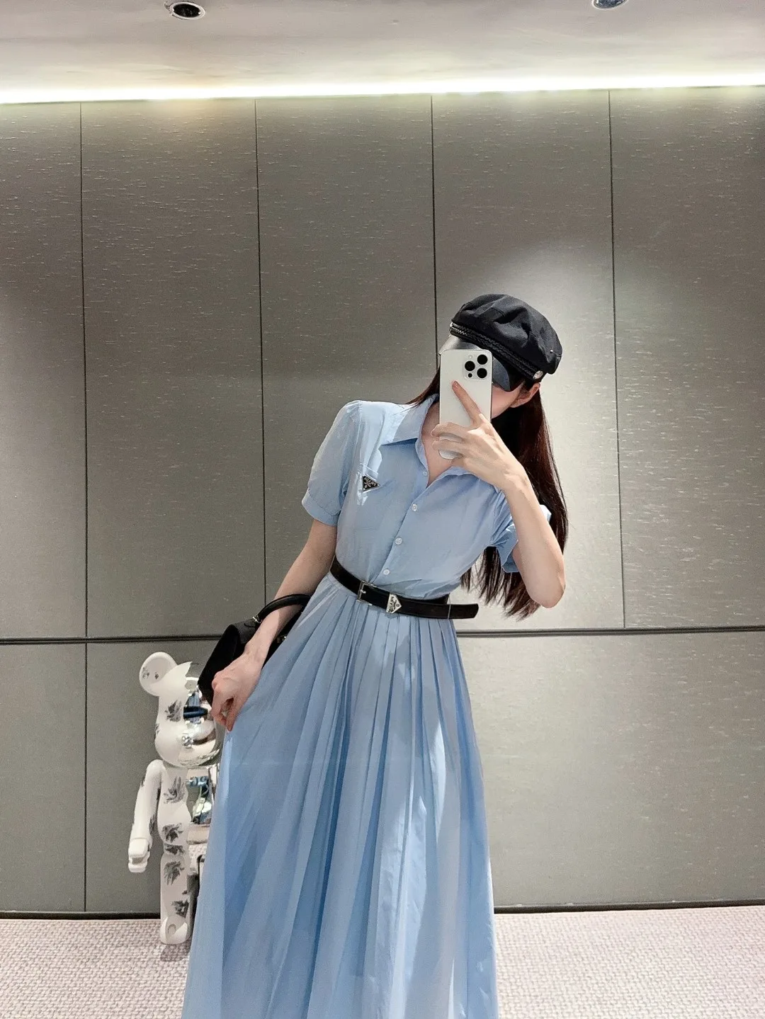 Neu erschienen: Prada SS-Hemdblusenkleid. Verziert mit Dreieck-Logo. Hochwertige Verarbeitung. Mit Gürtel.