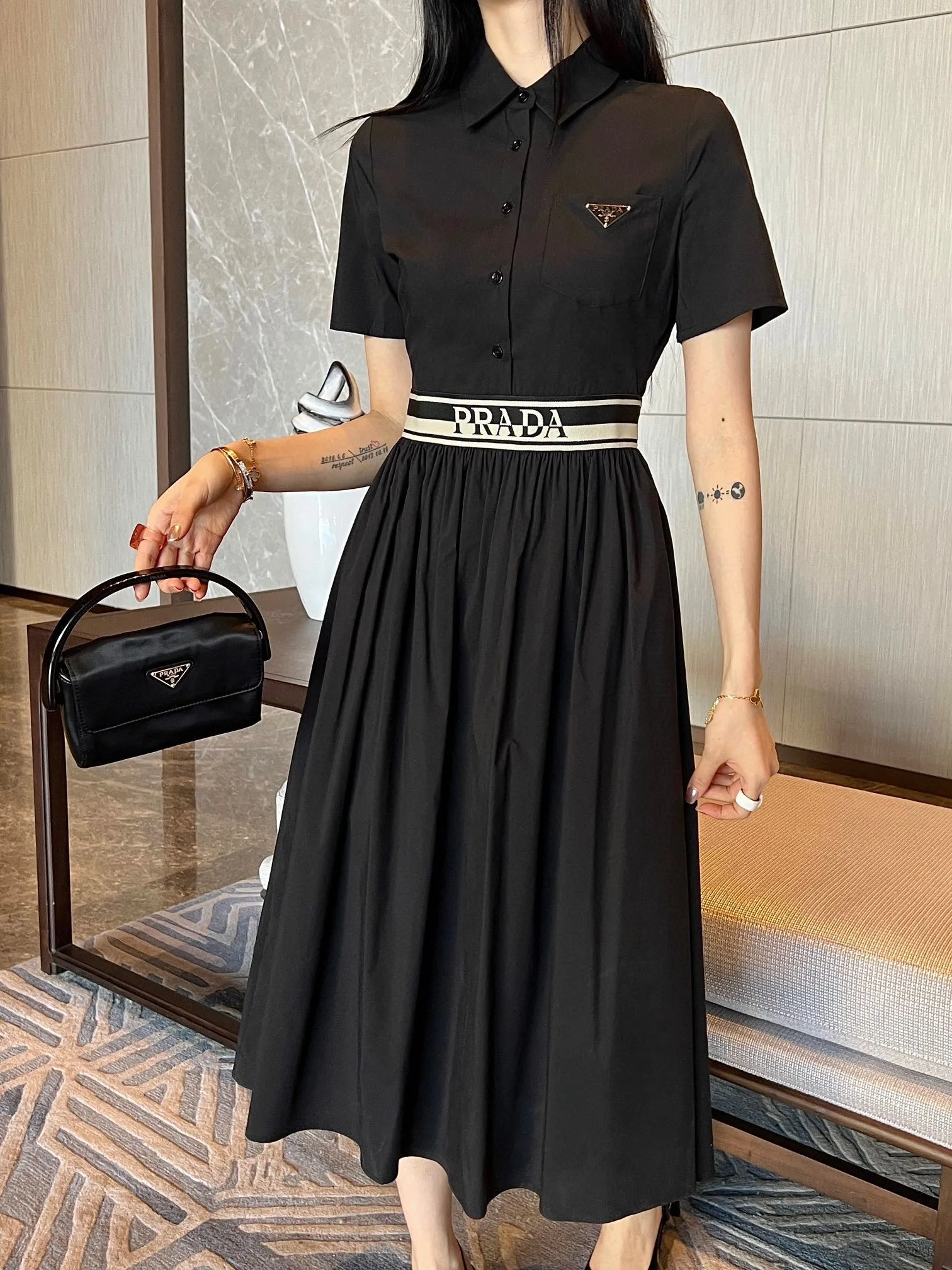Neu: PRAD* Prada SS Neues Hemdblusenkleid. Dreieckiges Logo-Verzierung. Hochwertige Verarbeitung. Webband-Schriftzug am Bund. Größen: S–ML