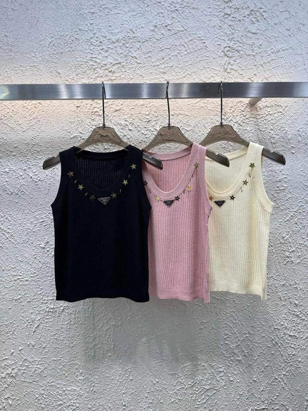 Prada Strickweste mit individuell gesticktem Dreieckslogo und fünfzackigem Stern und Pailletten
