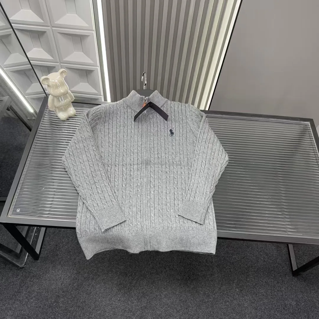 Empfohlene Pullover für den Frühherbst: Ralph Lauren Paul Embroidered Pony Ribbed Knit Cardigan Sweater Jacket. Alle drei Etiketten sind enthalten und entsprechen der offiziellen Website. Zoomen Sie hinein, um Details zu sehen. Foto mit der Originalkamera aufgenommen.