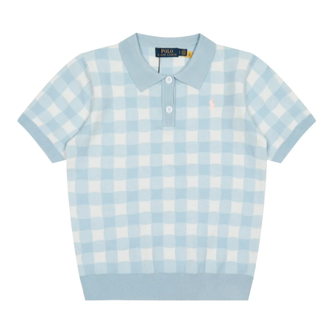 Ralph Lauren Ralph Lauren Ganzjahres-Goddess Kurzarmshirt mit Karo-Jacquard-Strick und Revers