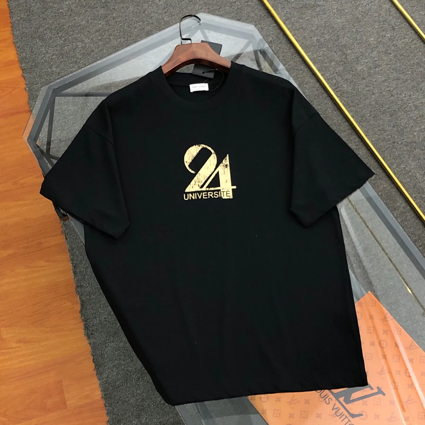 SAINT LAURENT SLP Blaues, neues, kurzärmeliges T-Shirt mit gesticktem Logo