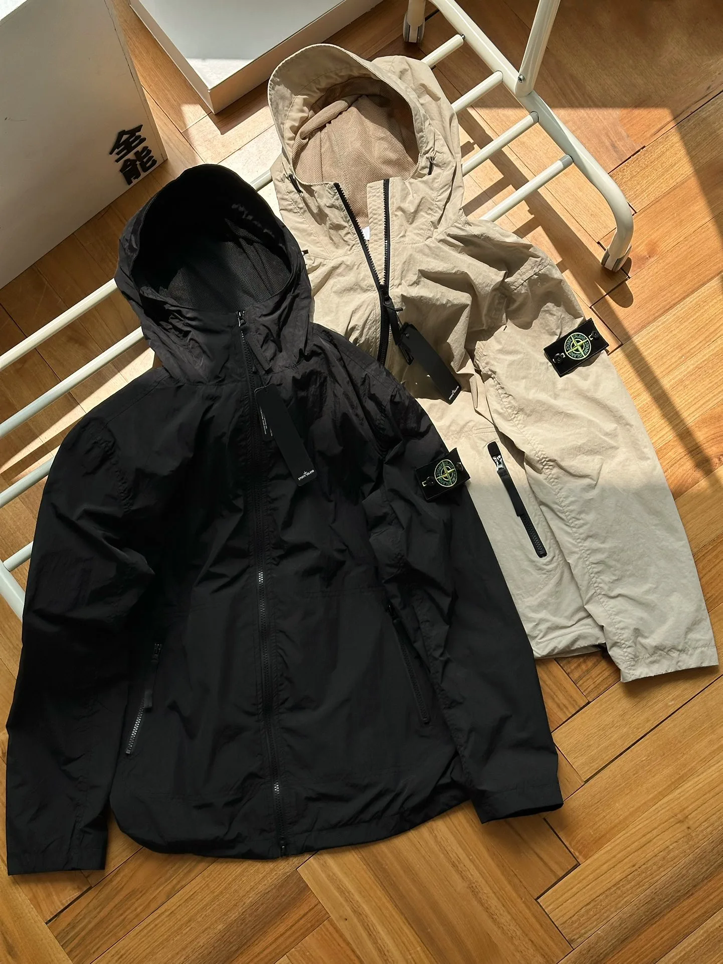 STONE ISLAND SS Crinkle Nylon Einfarbige Kapuzenjacke mit Reißverschluss und langen Ärmeln
