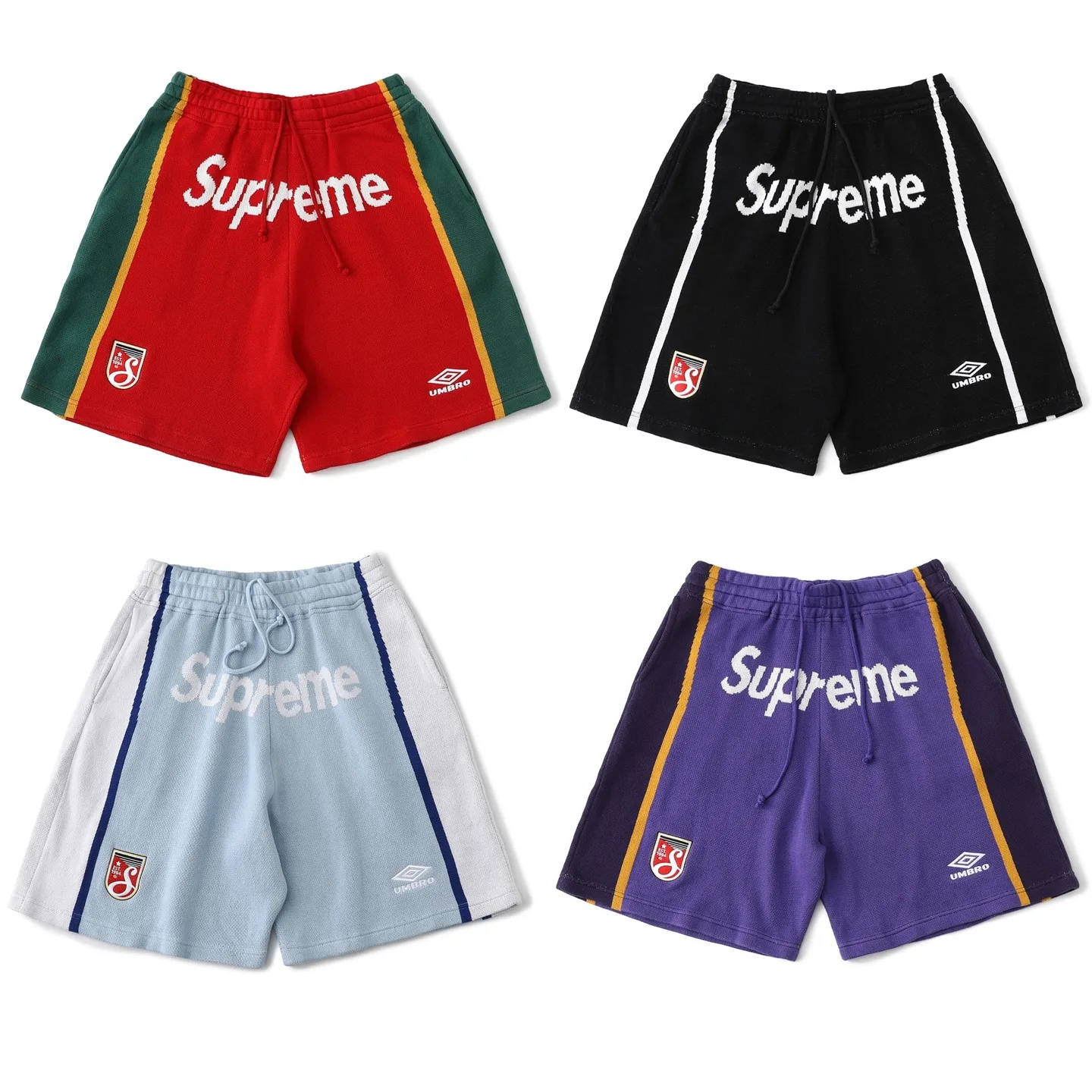 Bestellen Sie die bewährten, kurzärmeligen Strickshorts aus der SUPE X UMBRO-Kollaboration vor. Diese UMBRO-Strickshorts sind ein Patchwork-Modell im High-Street-Stil im amerikanischen Stil.