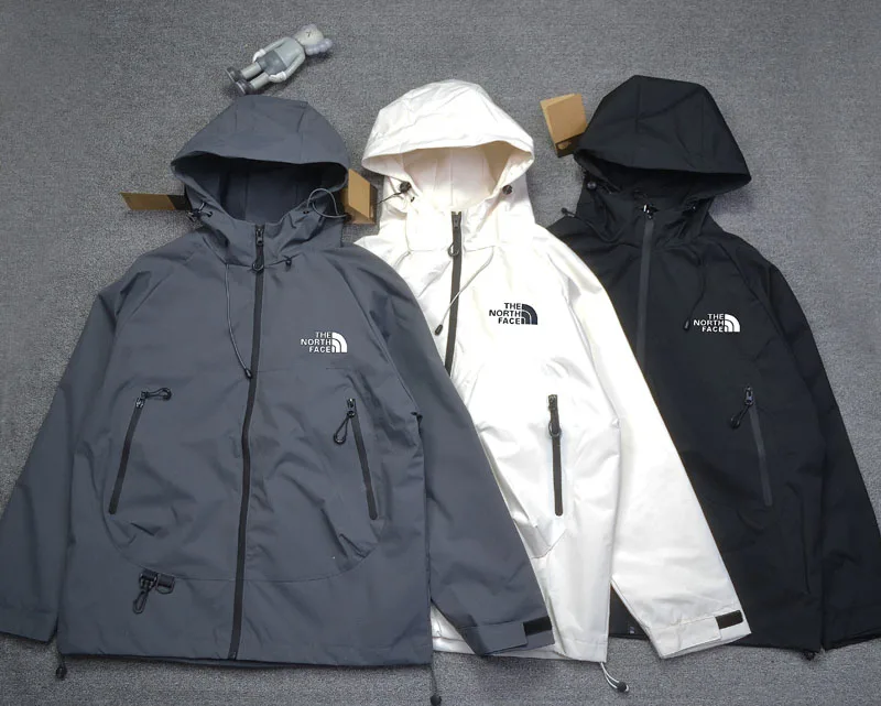 The North Face Frühlings- und Herbst-Windjacke mit Kapuze für Paare, geliefert aus einer OEM-Fabrik in Qingdao. Diese TNF-Arbeitsjacke für Herren verfügt über mehrere Taschen!