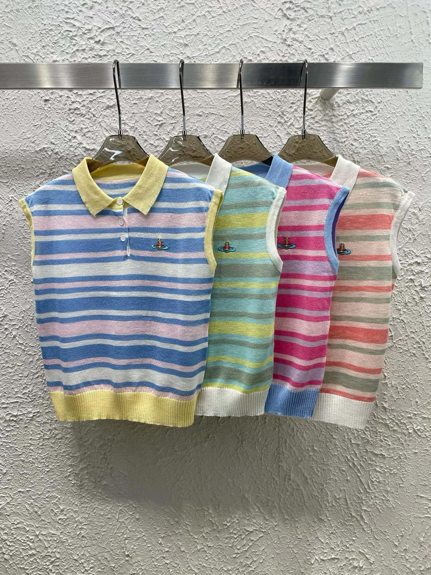 Vivienne Westwood Saturn – Strickweste mit bunten Streifen und Stickerei am Revers