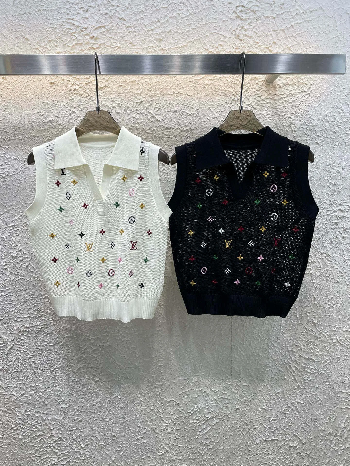 Hochwertige Weste von Louis Vuitton im weißen Strick-Stickerei-Stil