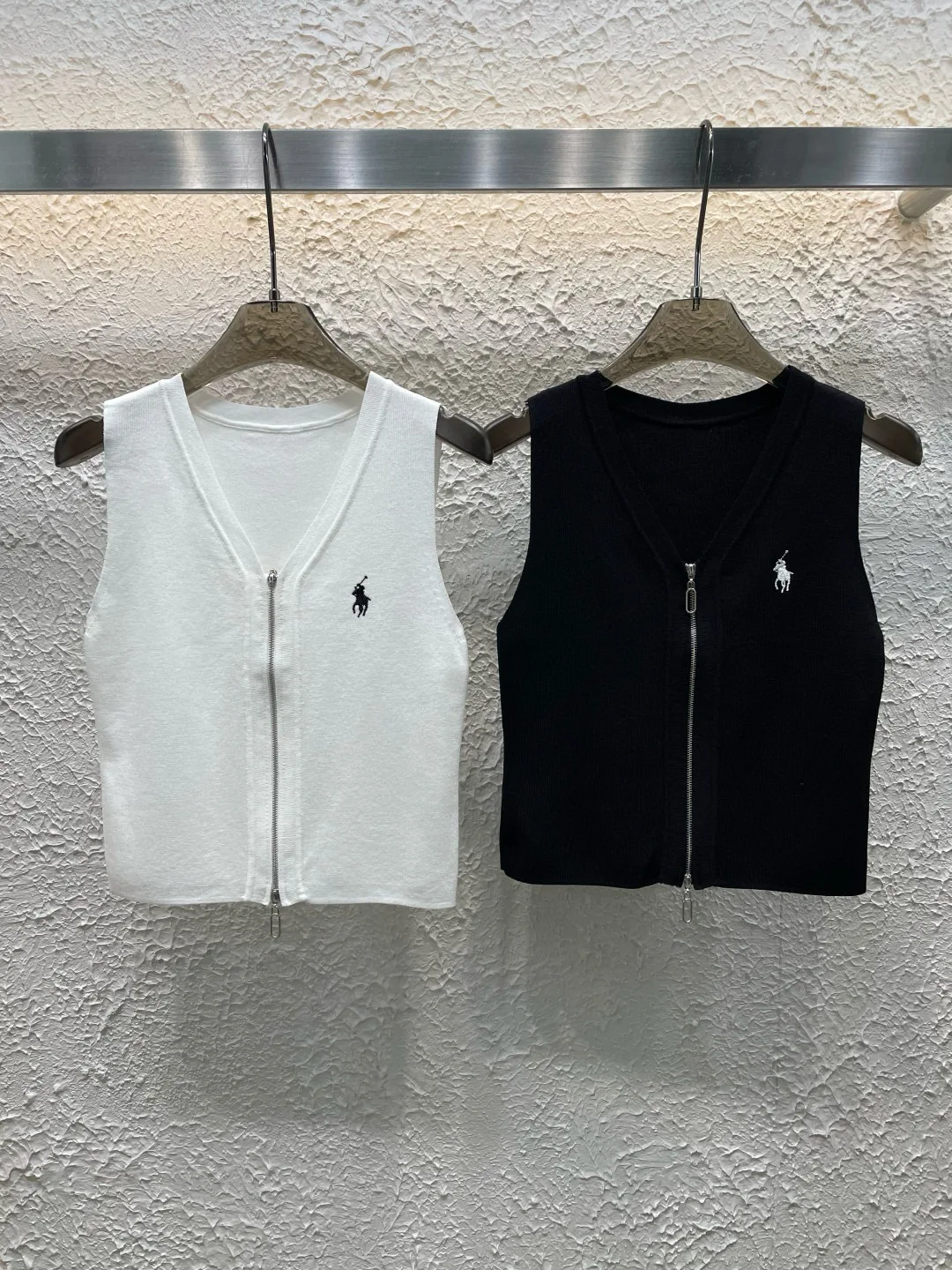 Ralph Lauren RL Strickweste mit Pony-Stickerei, doppeltem Reißverschluss und V-Ausschnitt