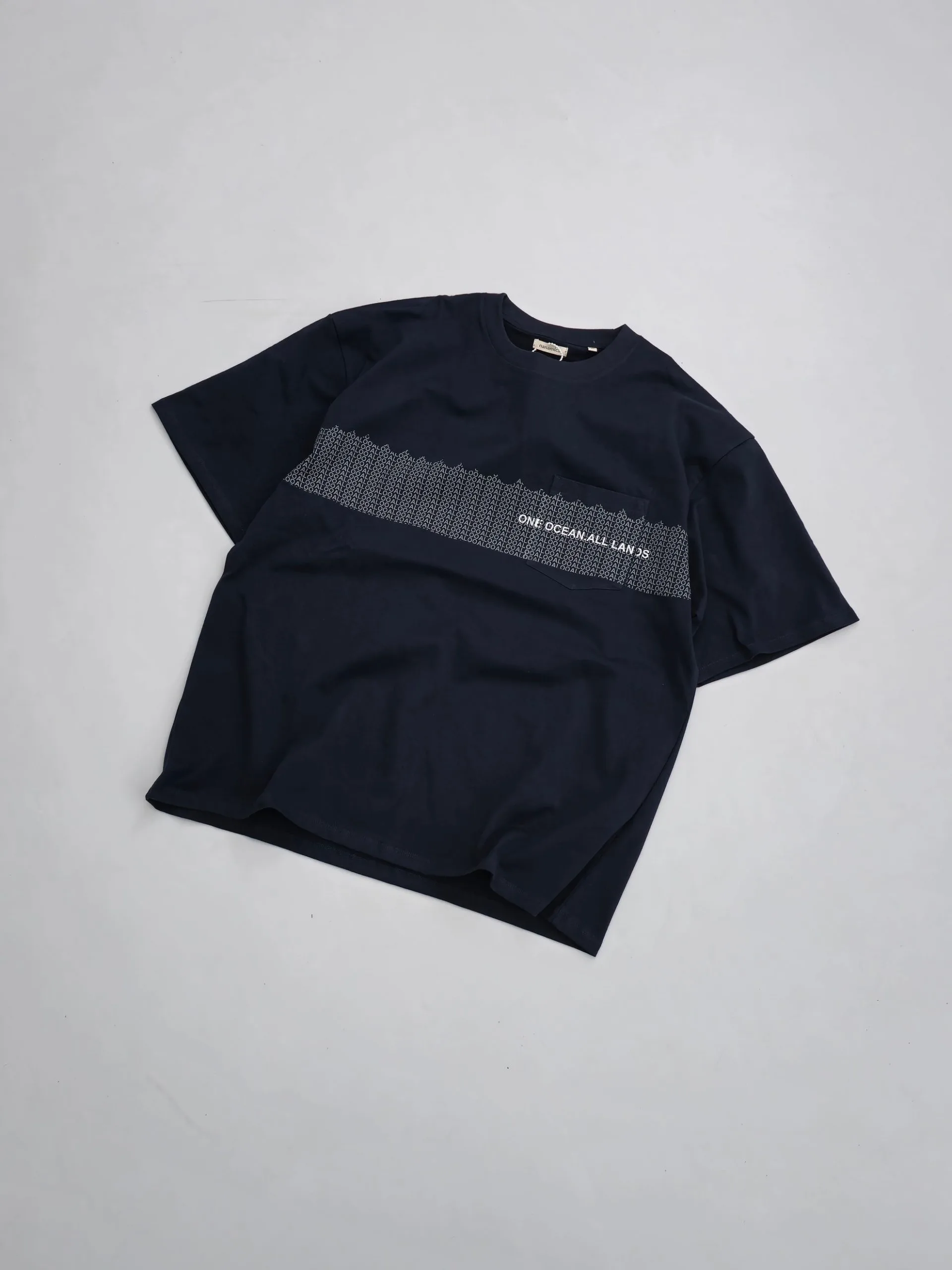Hochwertiger Ami Kurzarm-Baumwoll-Print im Marineblau