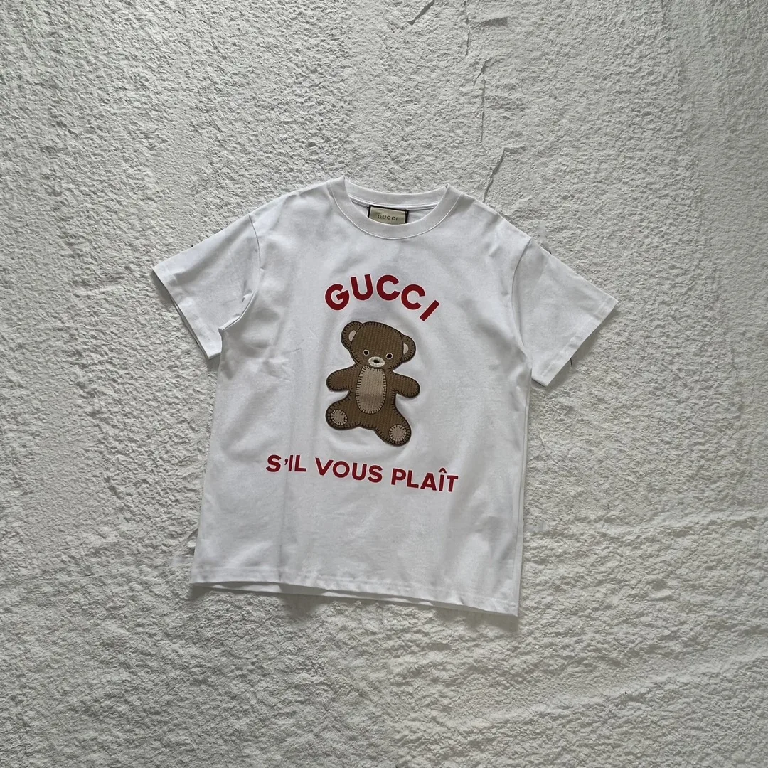 Hochwertiges Gucci SS Woll-T-Shirt mit Bären-Patch und Rundhalsausschnitt und kurzen Ärmeln.