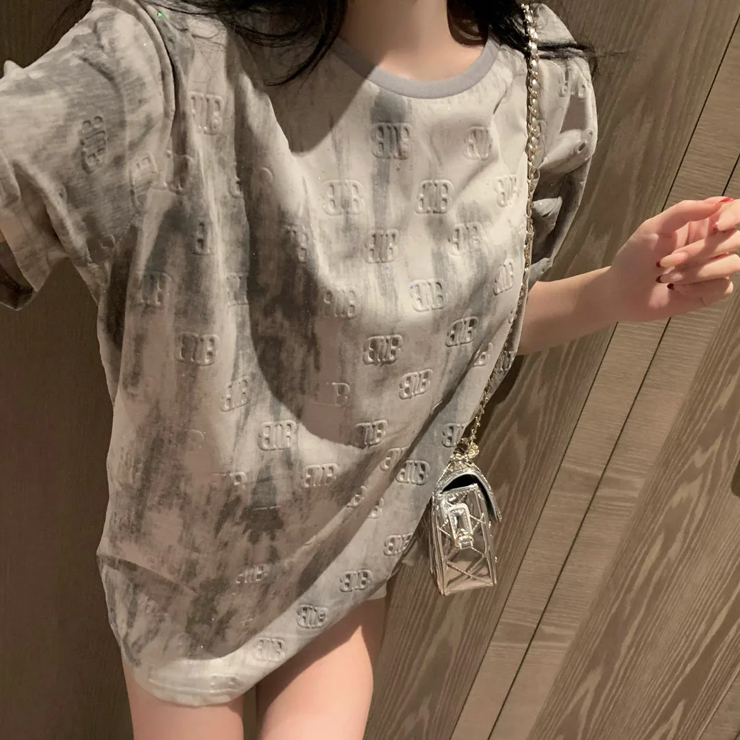 Balenciaga BLCG T-Shirt mit Batik-Print und Rundhalsausschnitt, Doppel-B-Prägung
