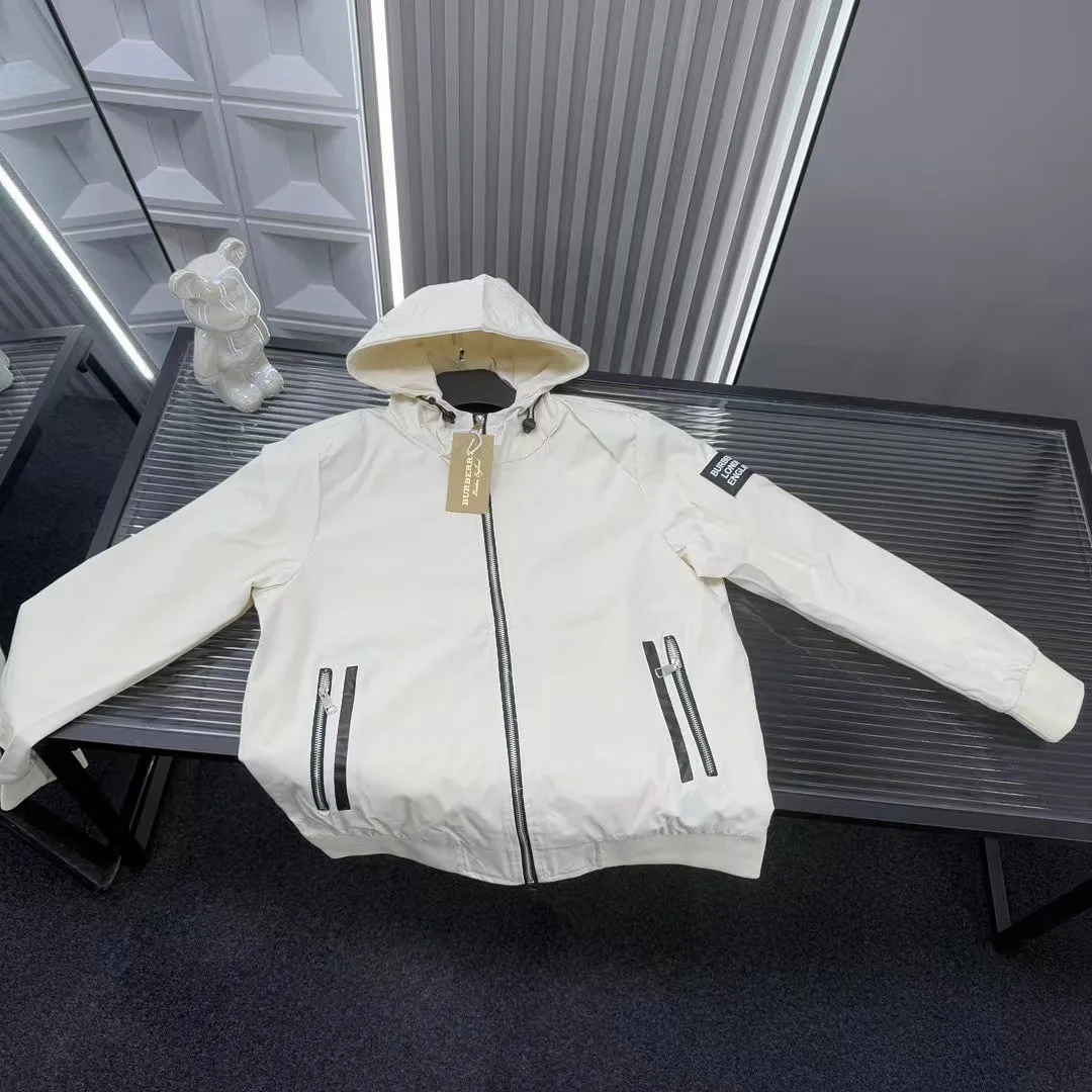 Für den Frühherbst empfehlen wir diese schlichte Burberry-Kapuzenjacke mit Reißverschlüssen an den Taschen. Sie verfügt über einen kleinen, gestickten Lederaufnäher am Ärmel, und alle drei Logos sind identisch mit denen auf der offiziellen Website. Zoomen Sie heran, um Details zu sehen. Foto mit der Originalkamera aufgenommen.