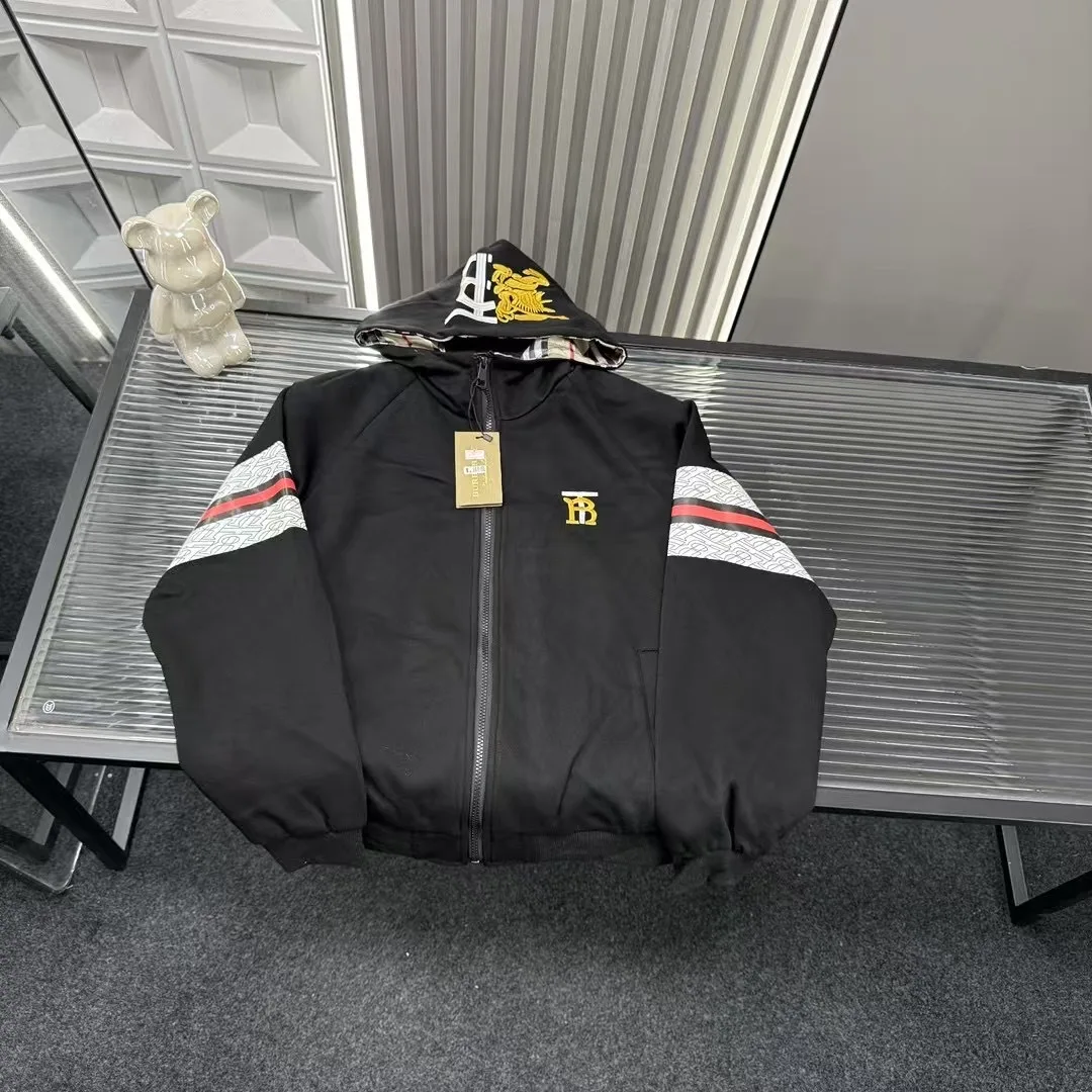 Empfohlene Oberbekleidung für den Frühherbst: Burberrys Kapuzenjacke mit gesticktem War Horse-Logo und Monogramm. Alle drei Logos sind identisch mit denen auf der offiziellen Website. Zoomen Sie hinein, um Details zu sehen. Foto mit der Originalkamera aufgenommen.