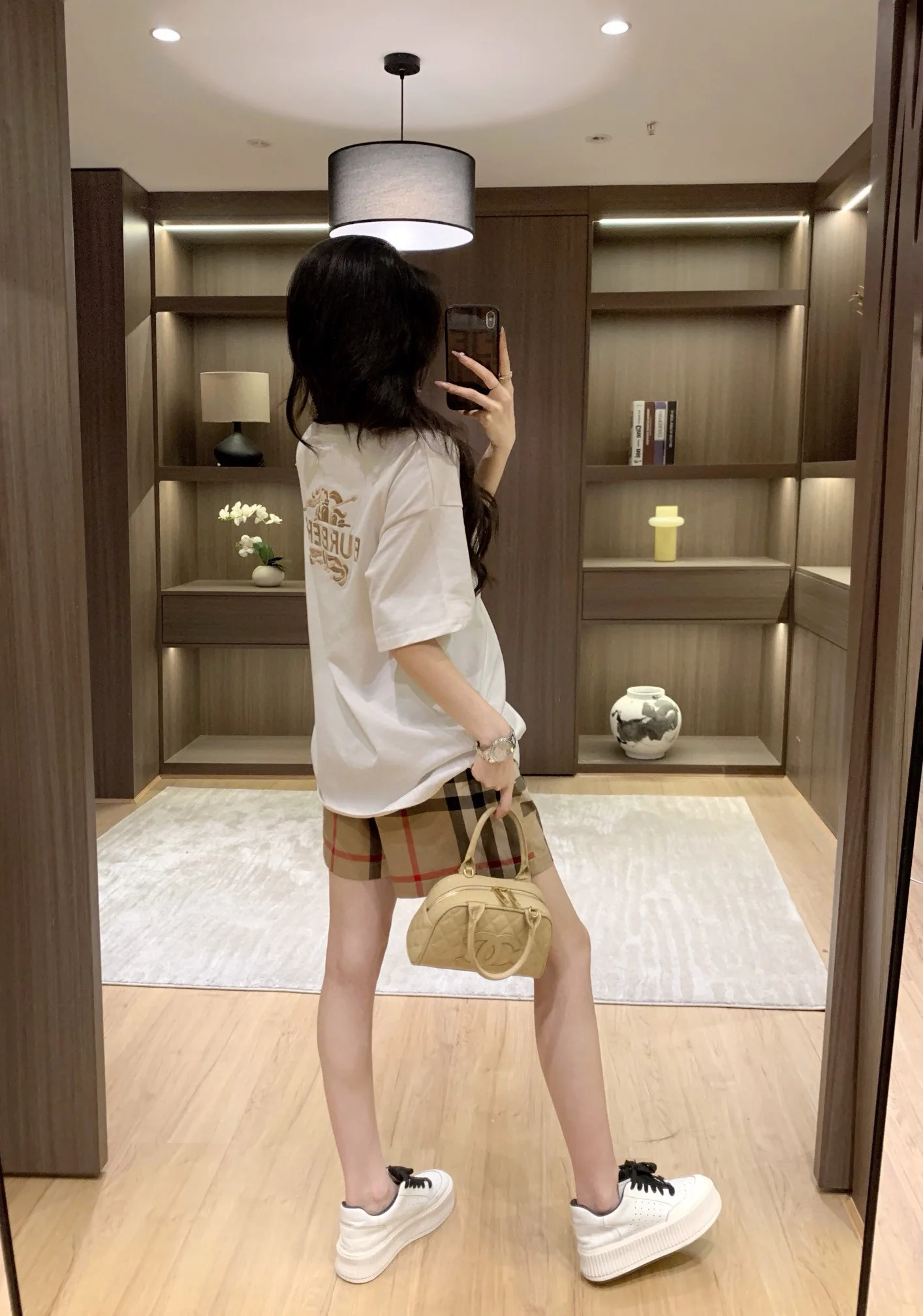Hochwertiger Burberry-Stil mit kurzen Ärmeln und Stickerei