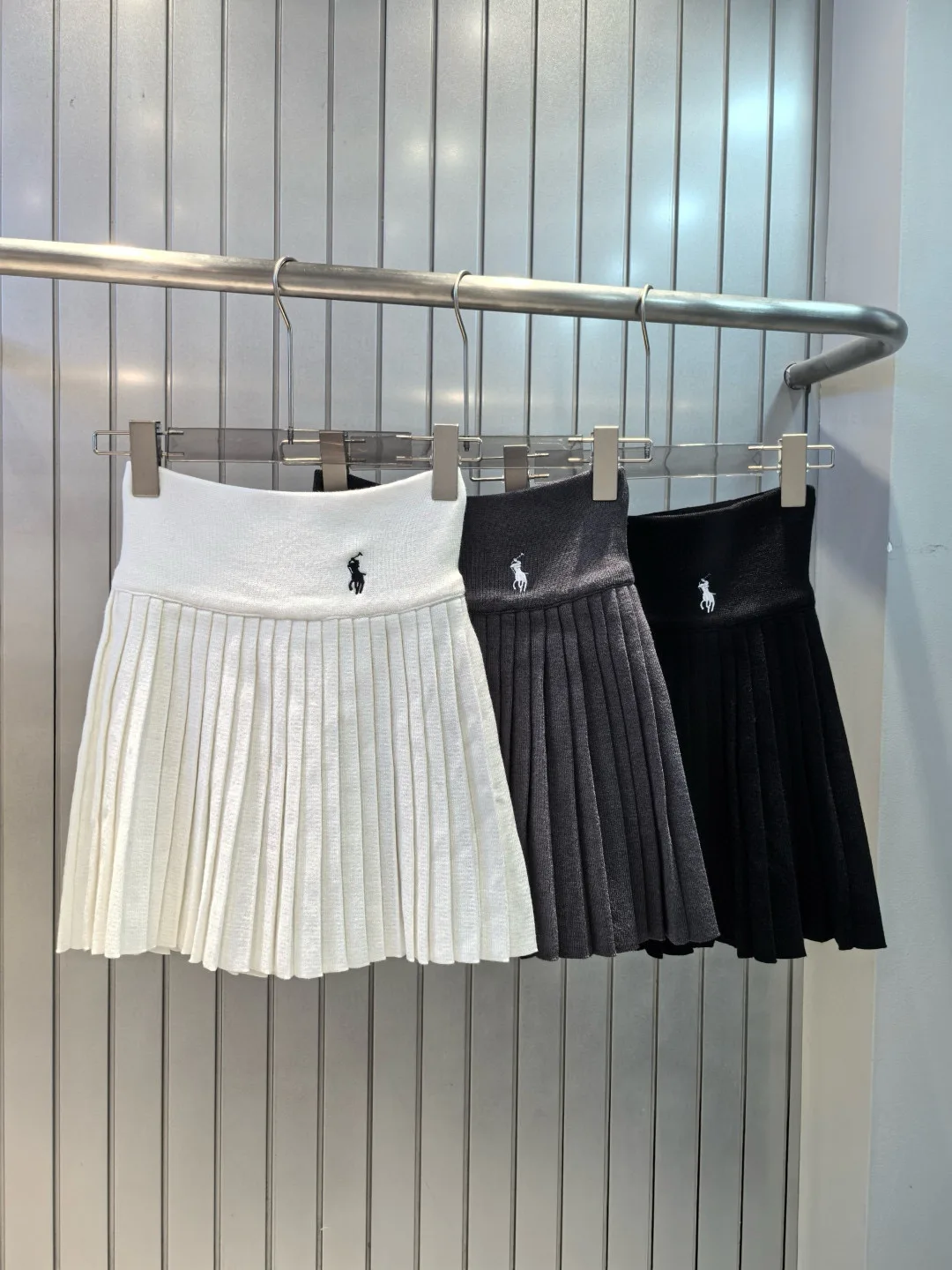 Ralph Lauren RL Plissierter Strickrock mit Pony-Stickerei