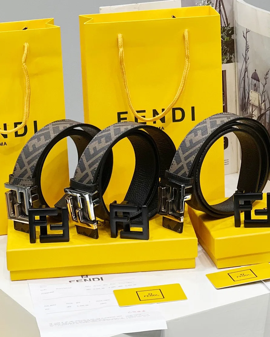 Original FF-Schnalle! Importiertes Kalbsleder mit geprägtem FF-Muster! So stylisch! Zusammen mit der vergoldeten Metallschnalle ergibt sich ein wahrhaft perfektes Design! Ein stylischer und modischer Gürtel!