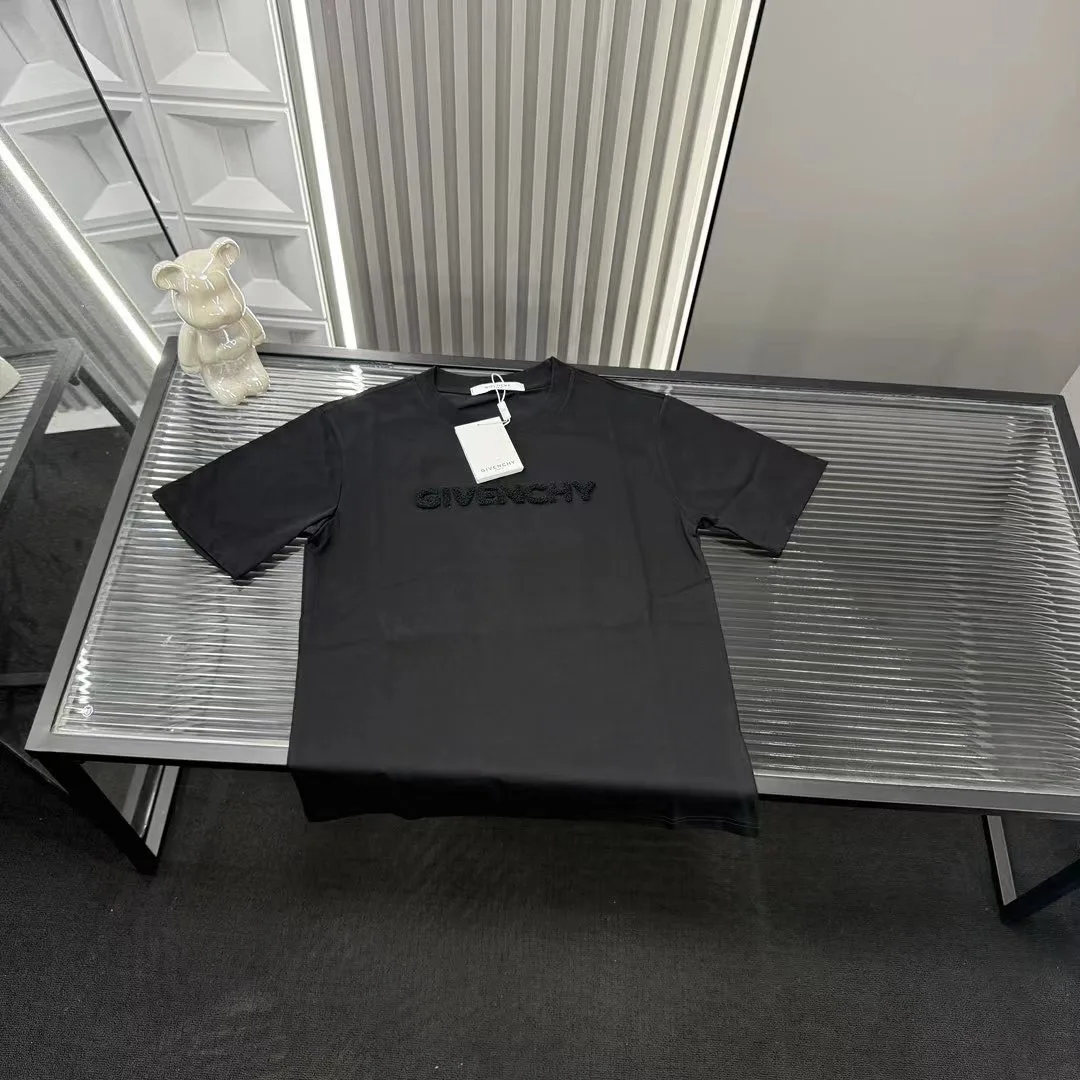 Empfohlene neue Givenchy-Kurzarmshirts mit 3D-Stickerei auf einem Handtuch. Alle drei Logos sind identisch mit denen auf der offiziellen Website. Zoomen Sie hinein, um Details zu sehen. Foto mit der Originalkamera aufgenommen.