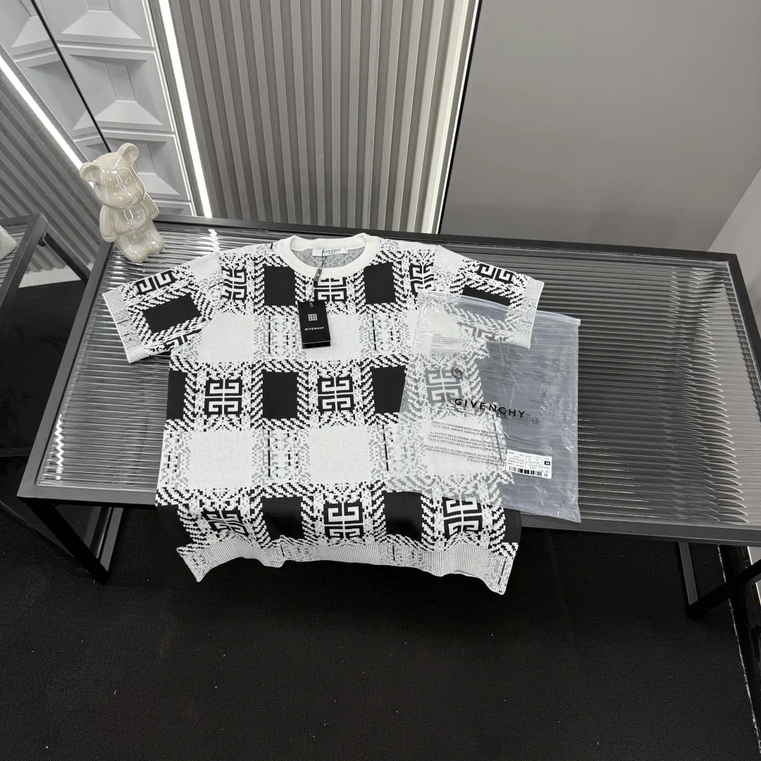 Beliebtes Givenchy-Kurzarm-Strickoberteil mit Karomuster.