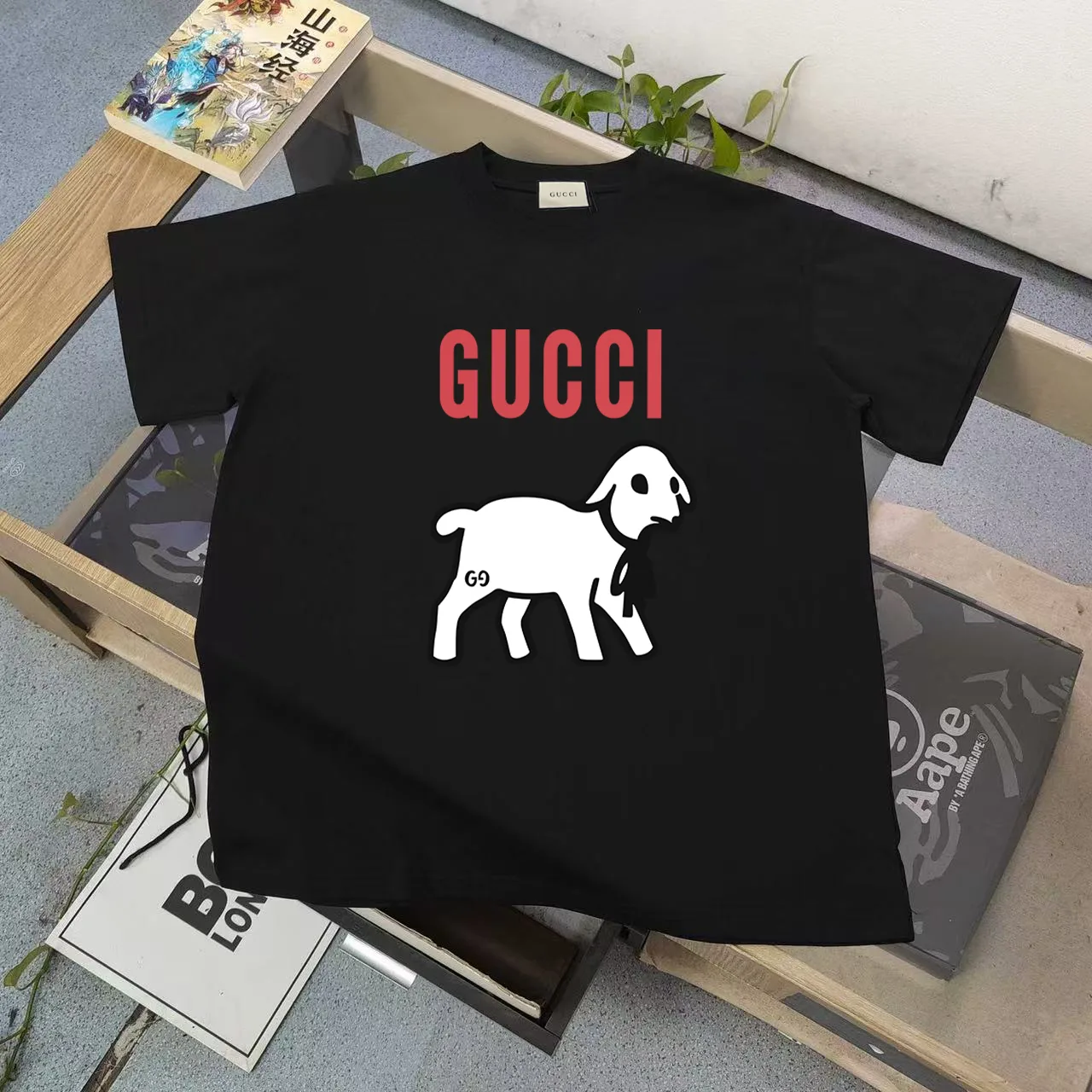 Marthas neues Gucci | SS’s neues Kurzarm-T-Shirt mit Cartoon-Welpen-Print. Die kreativen Designs der Londoner Künstlerin und Illustratorin Hattie Stewart verleihen der Frühjahrskollektion der Marke lebendige Energie und Verspieltheit.