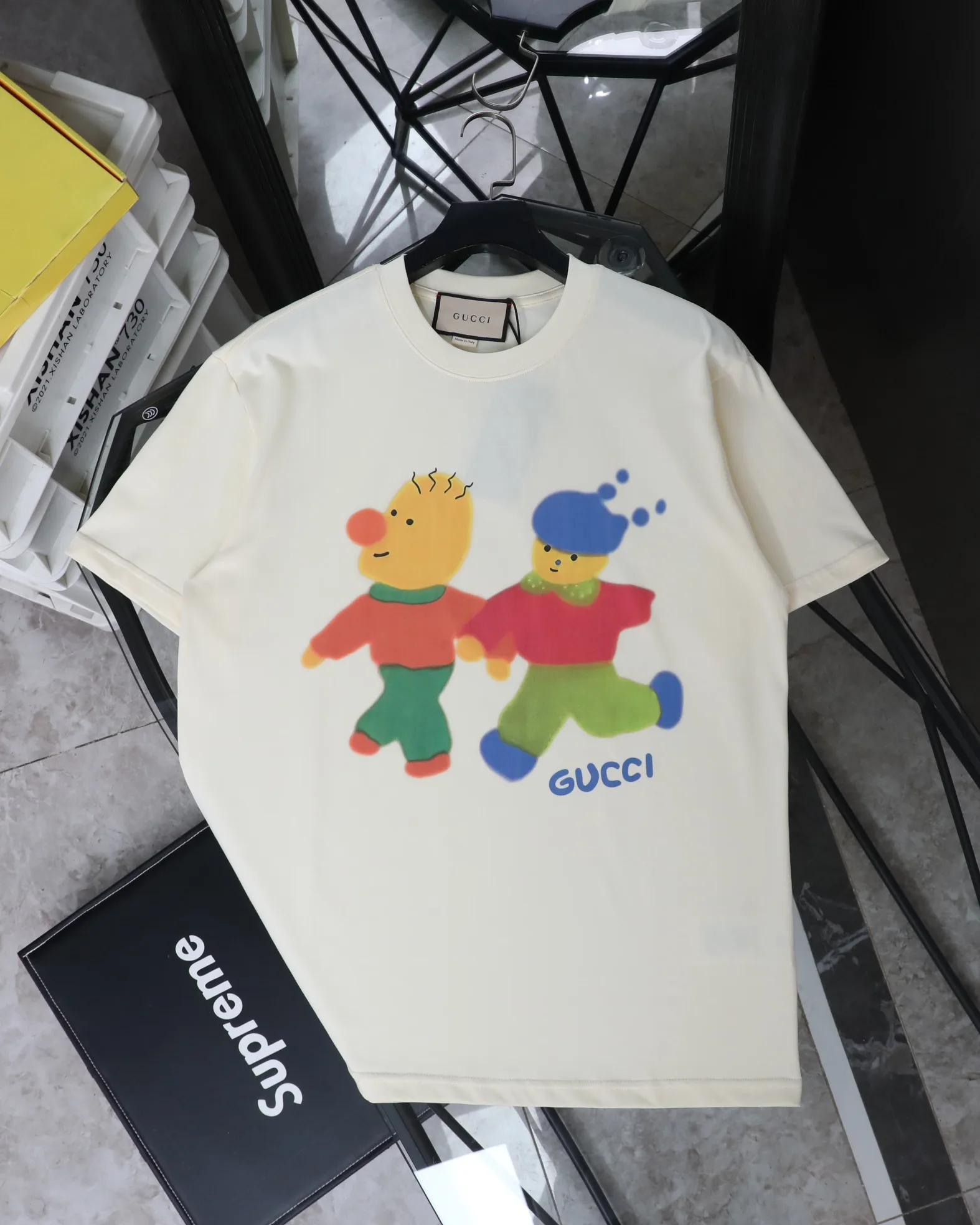 Hochwertiger Gucci-Stil mit kurzen Ärmeln und schwarzem Print