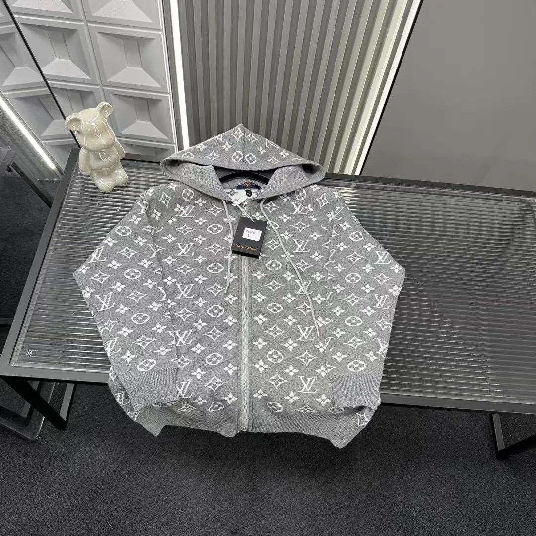 Empfohlene Oberbekleidung für den Frühherbst: Diese Louis Vuitton Kapuzenjacke aus Jacquard-Strick hat alle drei Labels, passend zur offiziellen Website. Zoomen Sie hinein, um Details zu sehen. Fotos mit der Originalkamera aufgenommen.