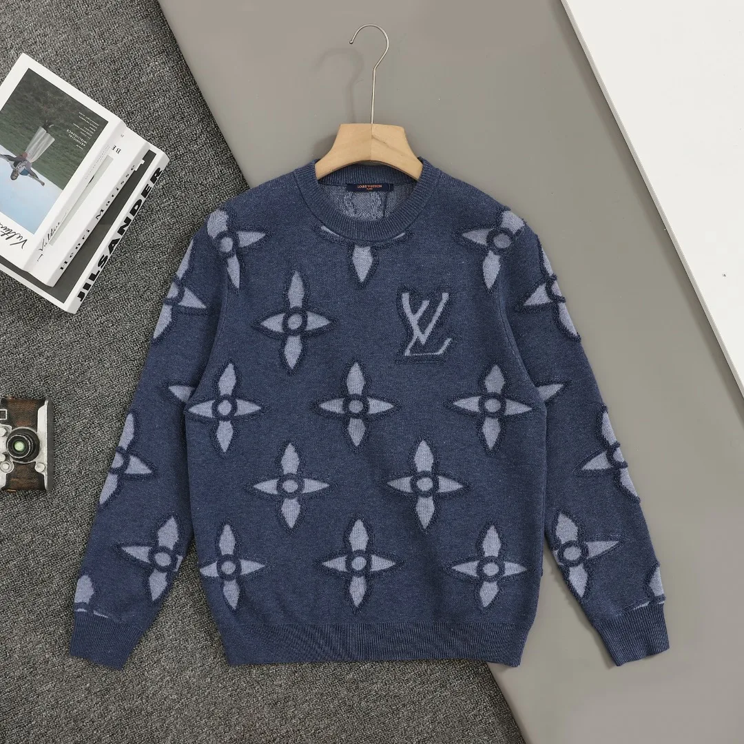 Louis Vuitton LV FW Neue Kollektion: Blauer Pullover mit vierblättrigem Kleeblatt und Blumenmuster