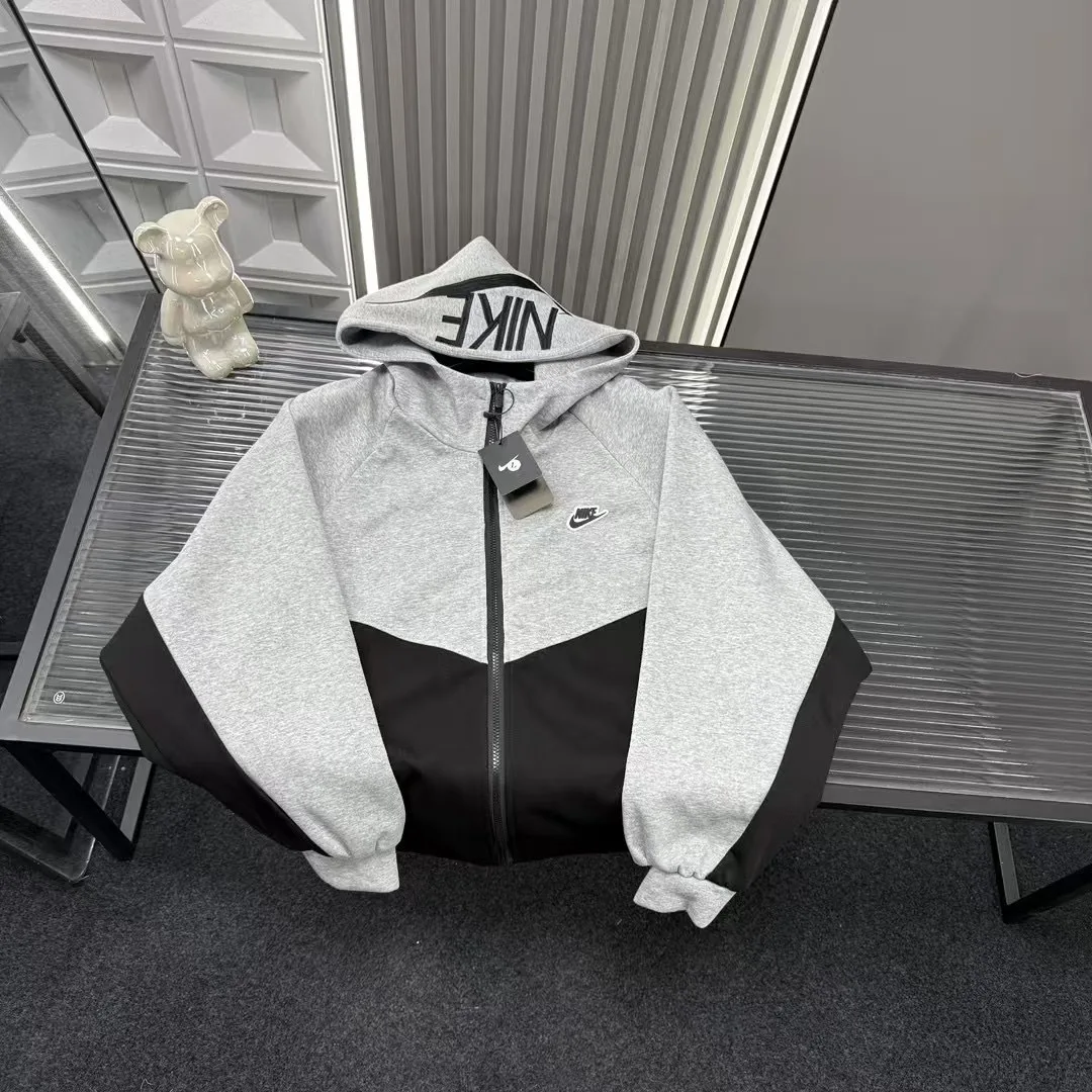 Hochwertiger Nike Mantel im grauen Patchwork-Stil