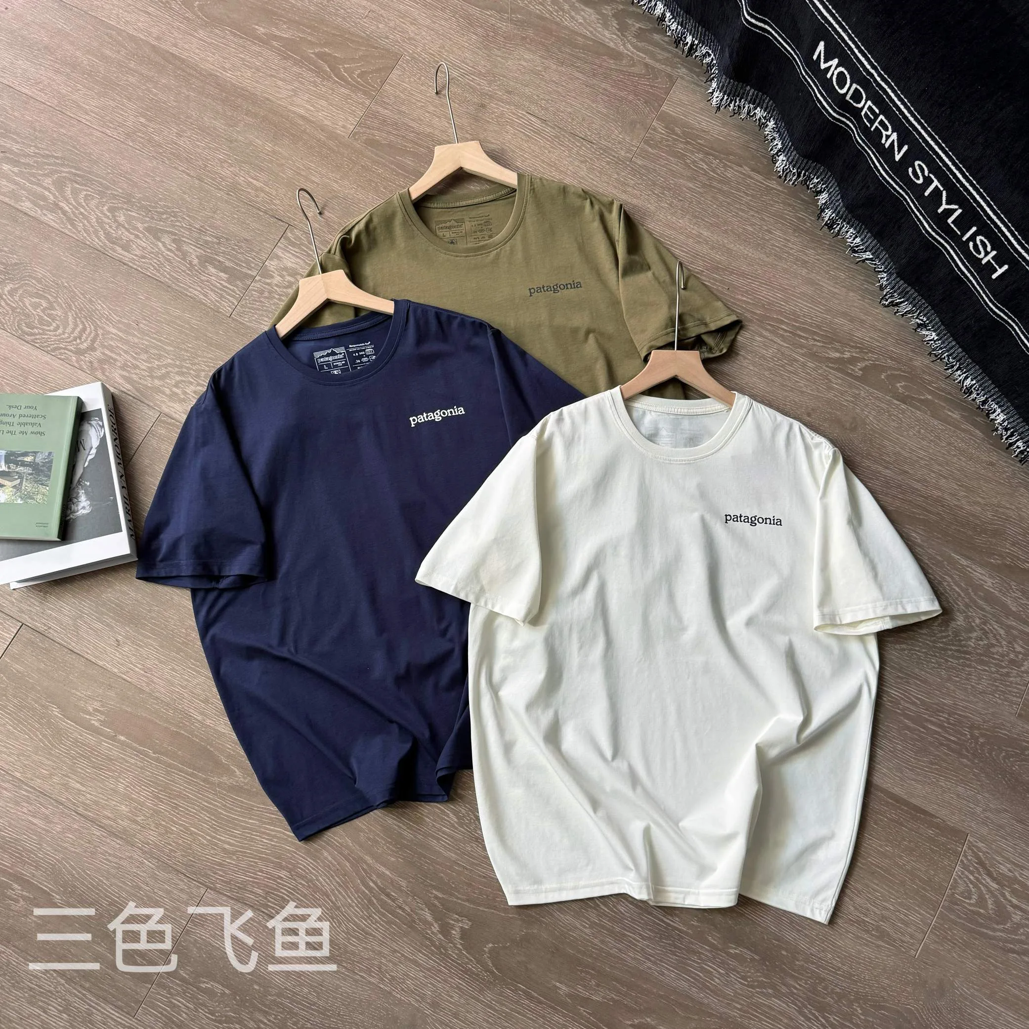 Pgonia Bata Lettering Flying Fish Print Rundhalspullover Kurzarm-T-Shirt, Herren-T-Shirt mit dreifarbigem Rücken und Flying Fish