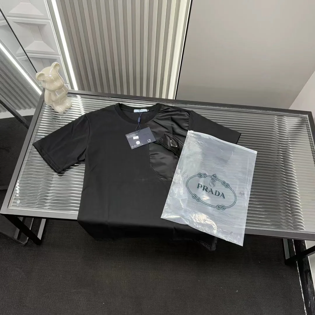 Hochwertiger Prada Kurzarm-Patchwork-Stil