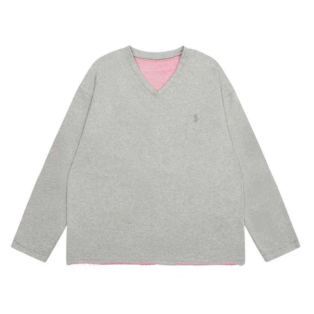 Ralph Lauren Zweifarbiges Paar-Sweatshirt mit Pony-Stickerei und V-Ausschnitt
