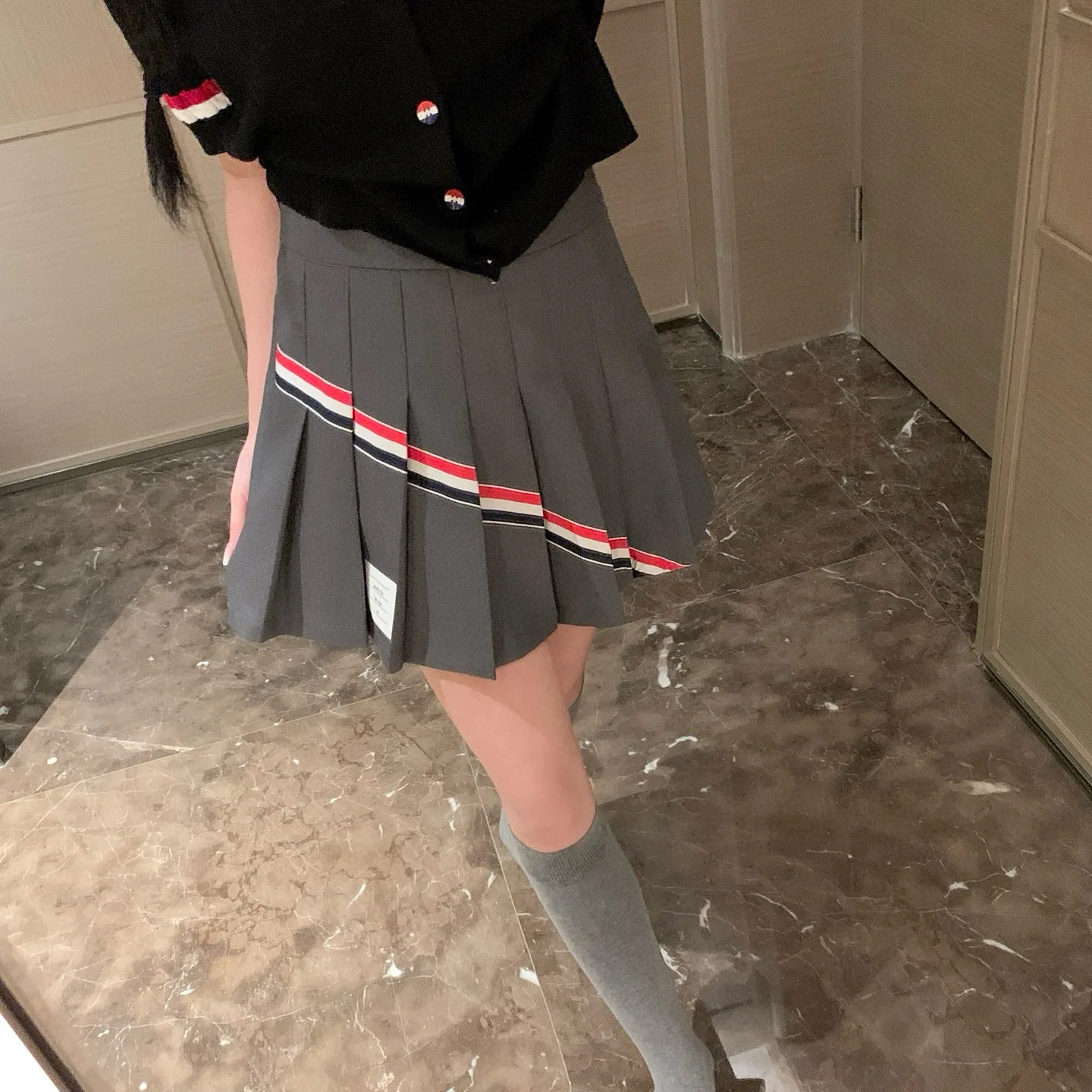 Thom Browne TB Klassischer dreifarbiger Plissee-Kurzrock mit Web-Panel und quadratischem Logo