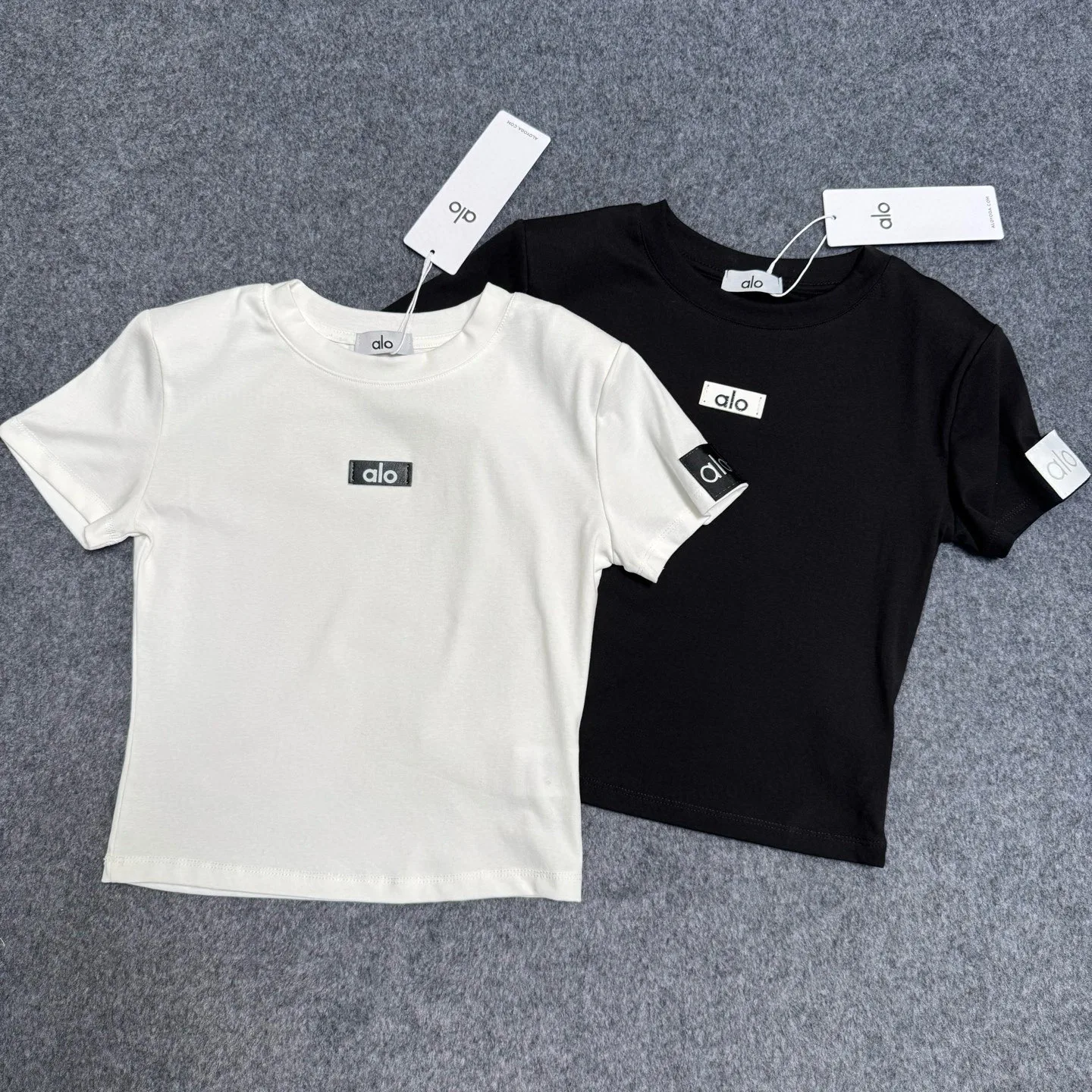 Hochwertiges Alo Kurzarm-Logo-Design aus schwarzem Leder