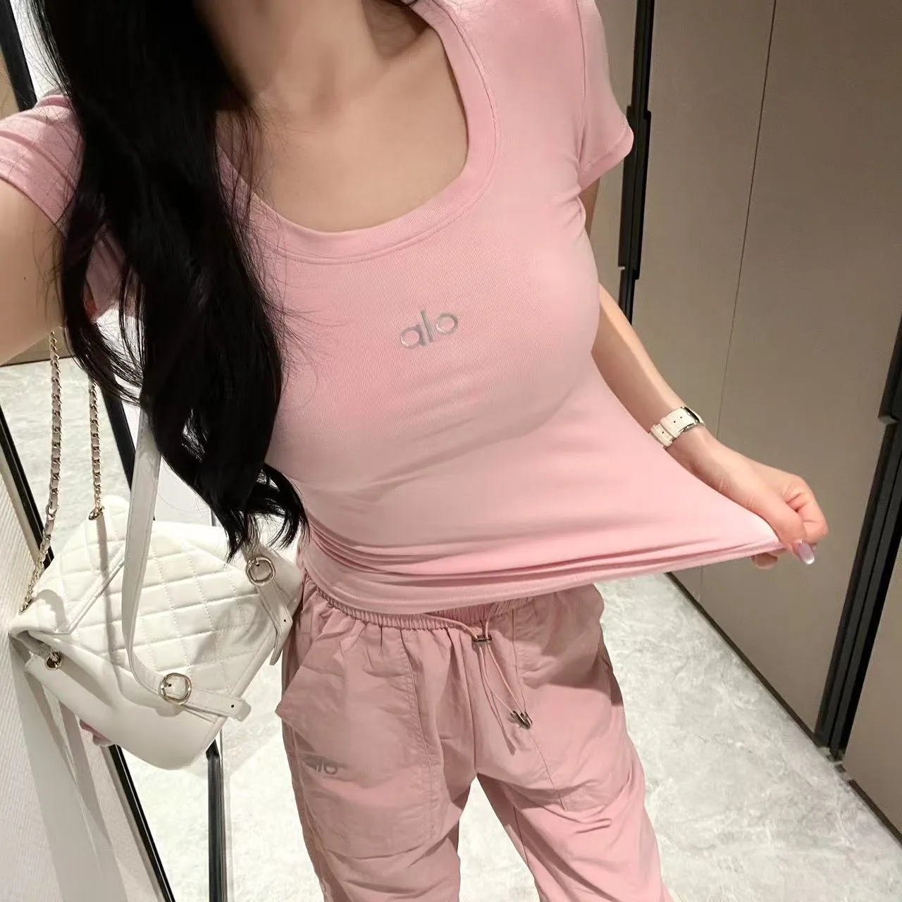 Hochwertiges Alo-Kurzarmshirt im weißen Logo-Stil