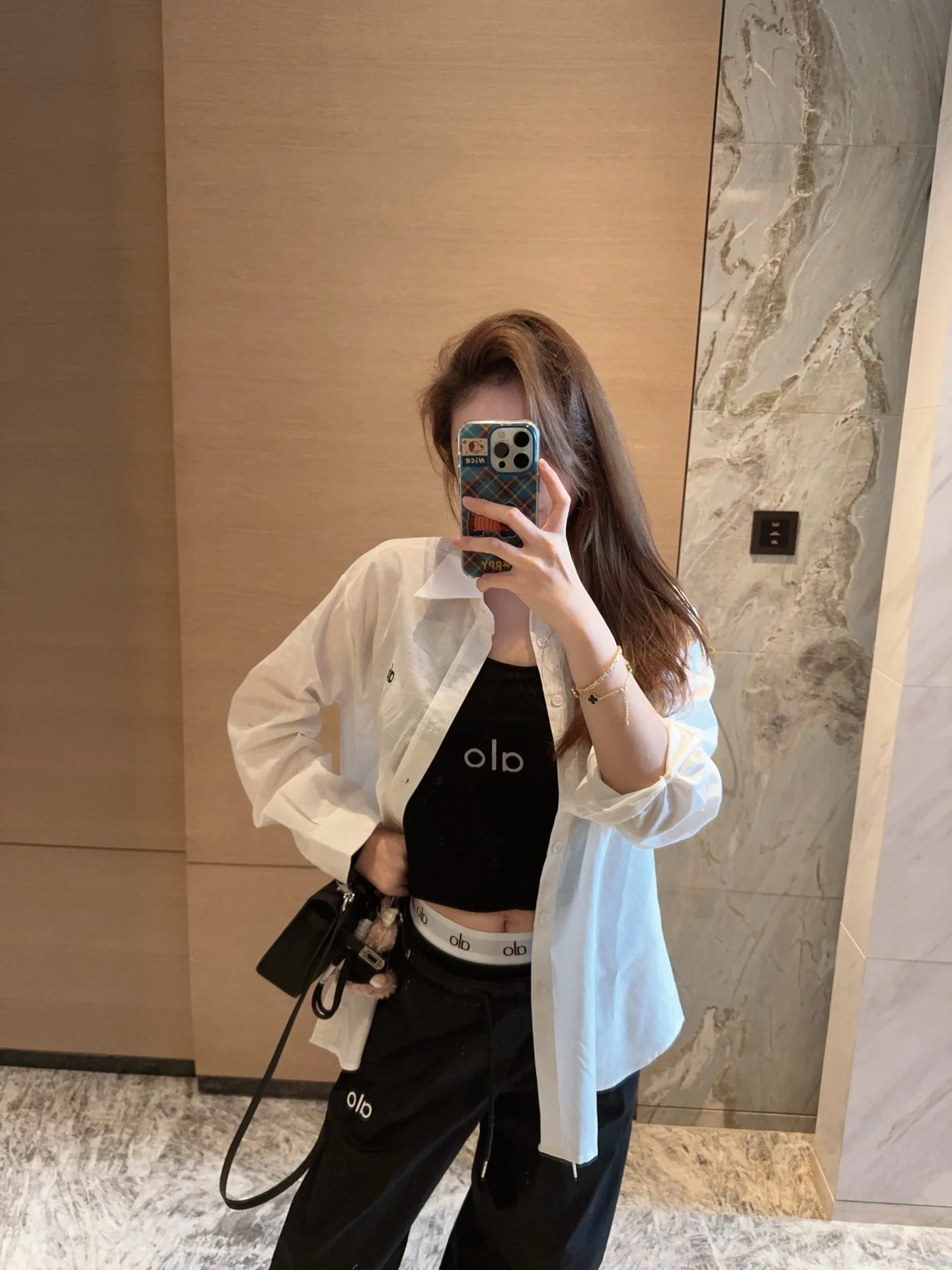 ALO [Hemd aus Baumwolle und Leinen mit Buchstabenstickerei]