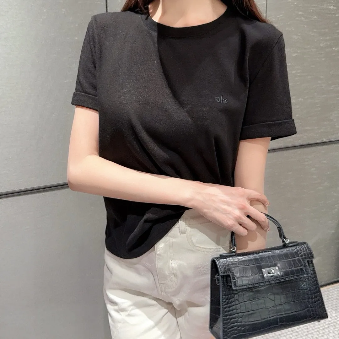 T-Shirt mit gesticktem Alo-Schriftzug, Rundhalsausschnitt und Manschetten