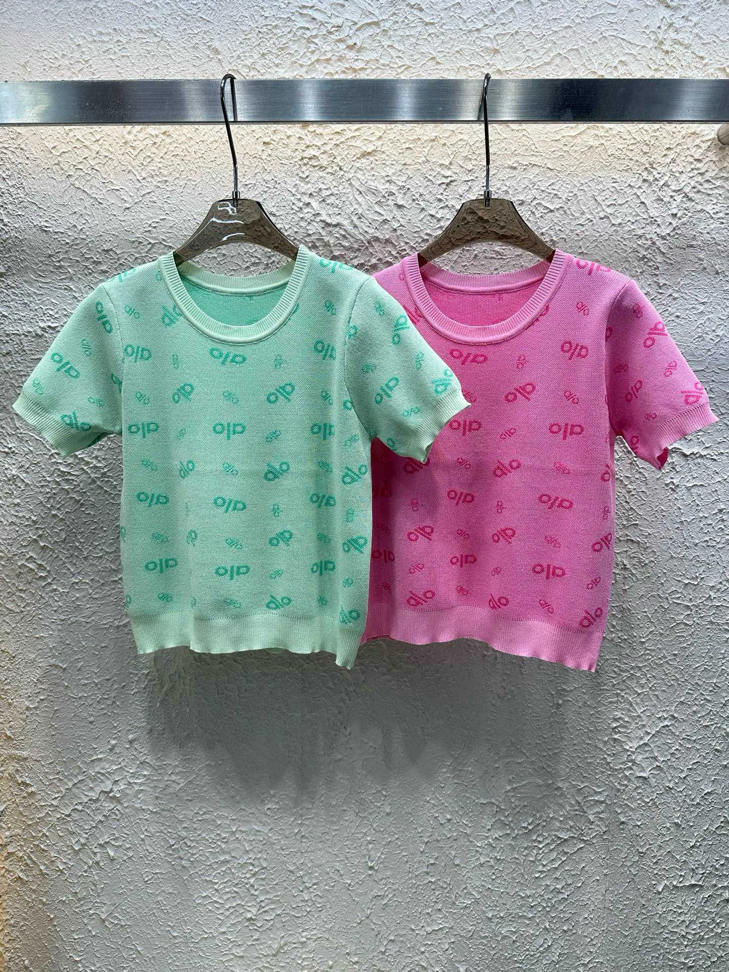 Kurzärmliges Jacquard-Strickshirt mit Alo-Schriftzug