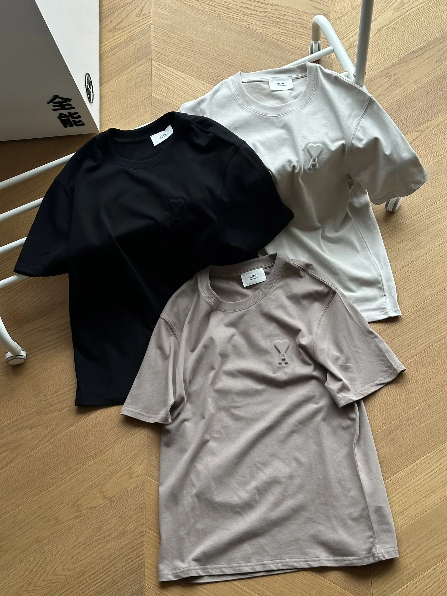 Erhältlich: AMI SS D Morandi Tricolor Kurzarm-Oberteil mit Prägung