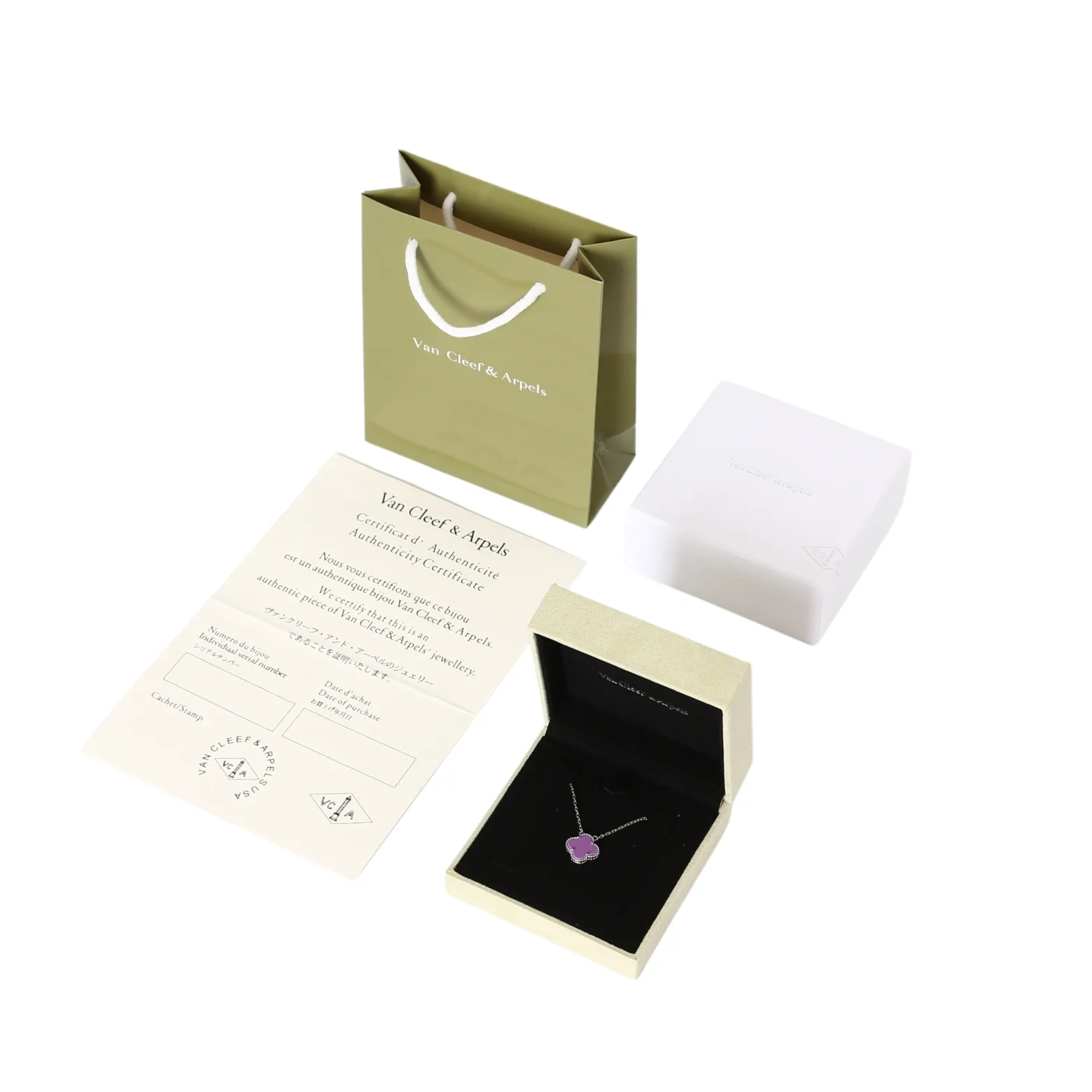 Van Cleef & Arpels Alhambra Lucky Collection Violett! Diese exklusiv in Dubai erhältliche Kollektion Violett mit vierblättrigem Kleeblatt von Van Cleef & Arpels aus Perlmutt besticht durch einen Farbverlauf von sattem Lila zu Pastellviolett und erzeugt so einen traumhaften Effekt. Handwerkskunst: Hochwertige Modelle nutzen oft Sticktechniken für eine zarte Textur und Glanz, während bei günstigeren Modellen Galvanisierung für mehr Farbe und Haltbarkeit sorgt. Ein Beispiel hierfür ist das Armband Violett mit laserbemaltem fünfblättrigem Kleeblatt von Van Cleef & Arpels, das Roségold und andere Metalle für ein dynamisches, elegantes und luxuriöses Design kombiniert. Es eignet sich perfekt für formelle Anlässe und den Alltag und verleiht jedem Schmuckstück einen Hauch von Raffinesse und Stil!
