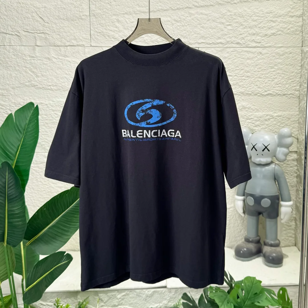 Balenciaga/Balenciaga Logo- und geometrisches Print-Kurzarm-T-Shirt für Damen und Herren. Locker und lässig für Paare.