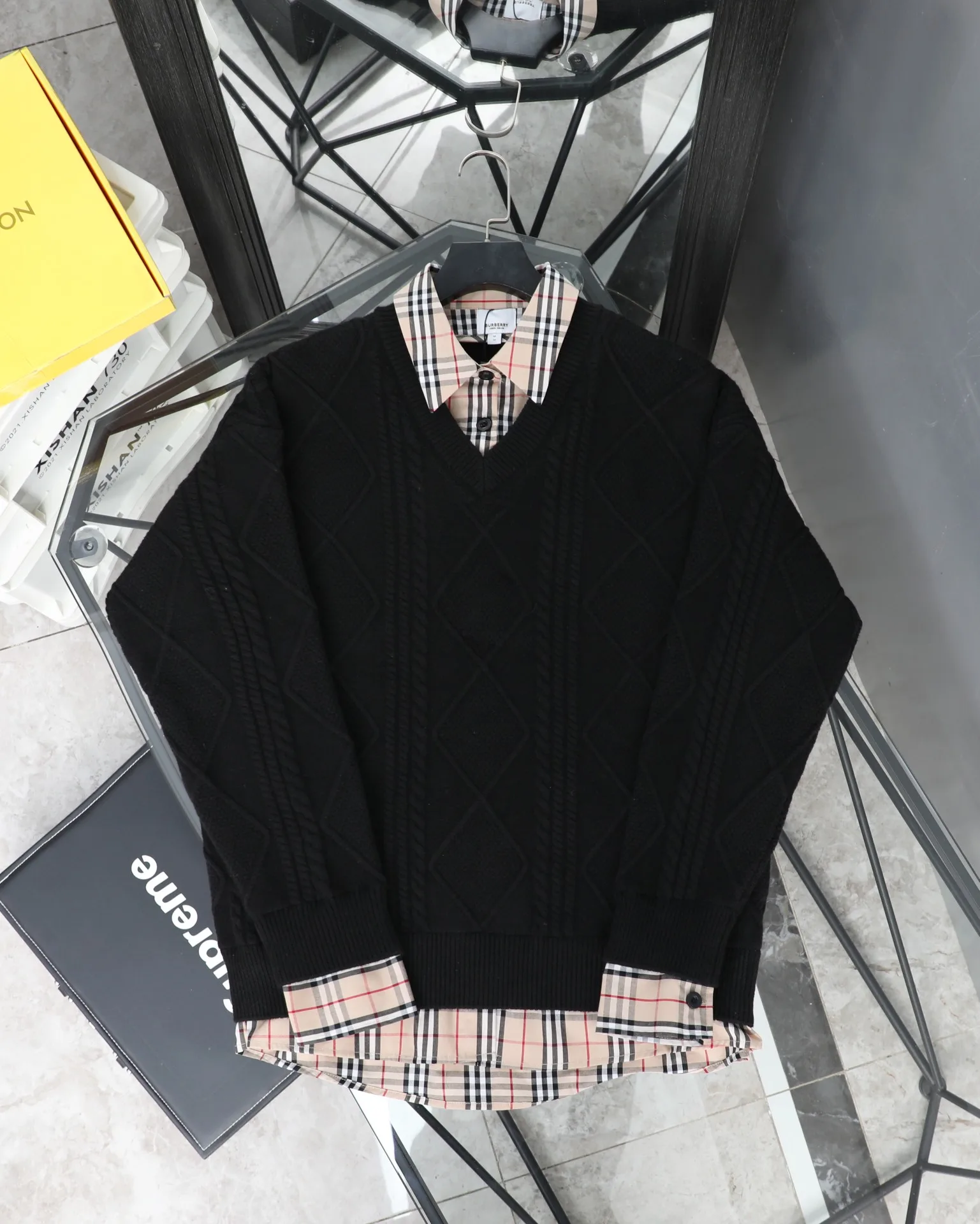 (Premium Edition) BURBERRY FW Plaid Paneled Destroyed Sweater Shirt