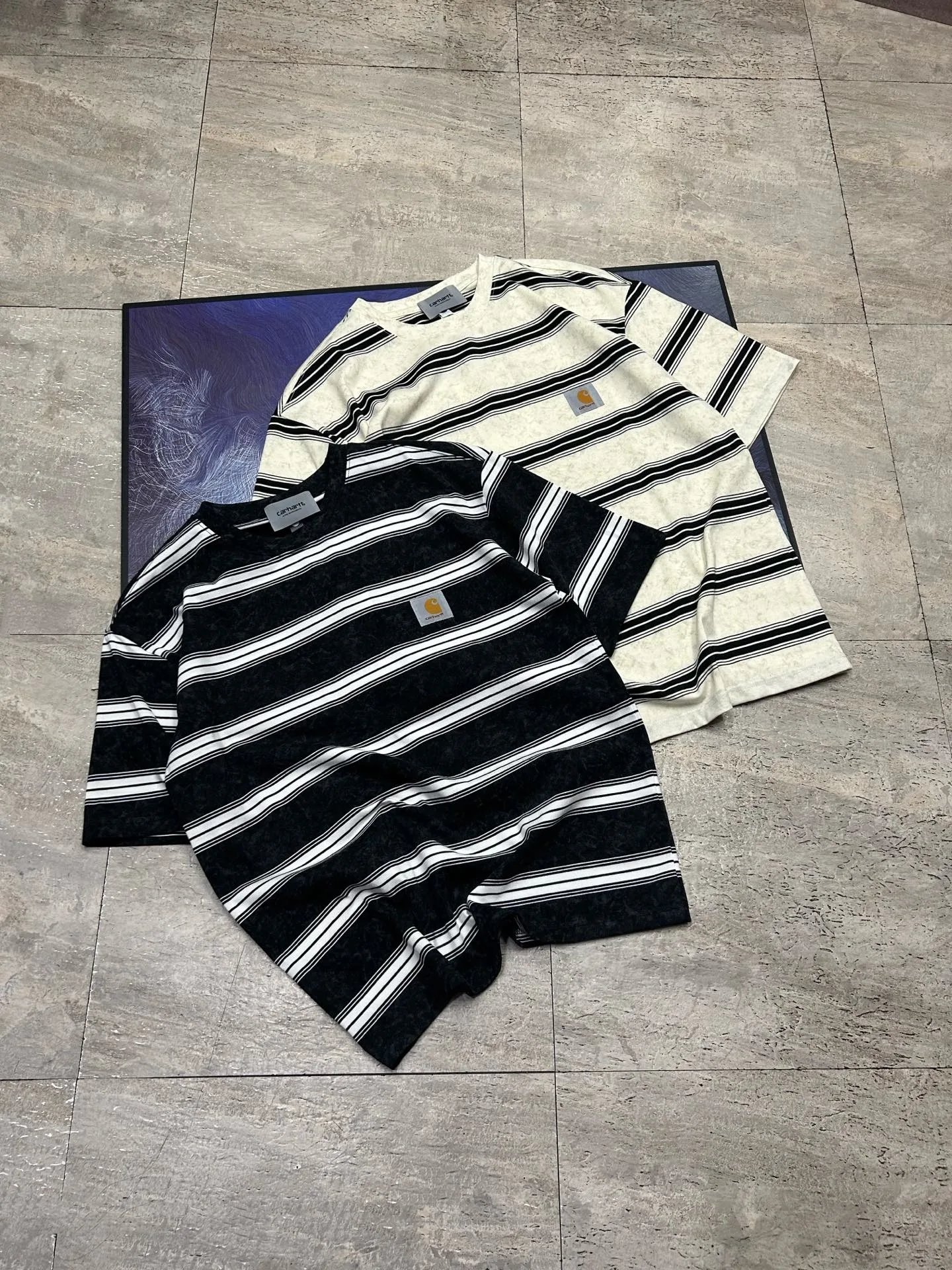 Carharttarhartt Overseas Edition SS: Neues, hochwertiges, locker geschnittenes, horizontal gestreiftes Kurzarm-Oberteil aus schwerer Baumwolle!