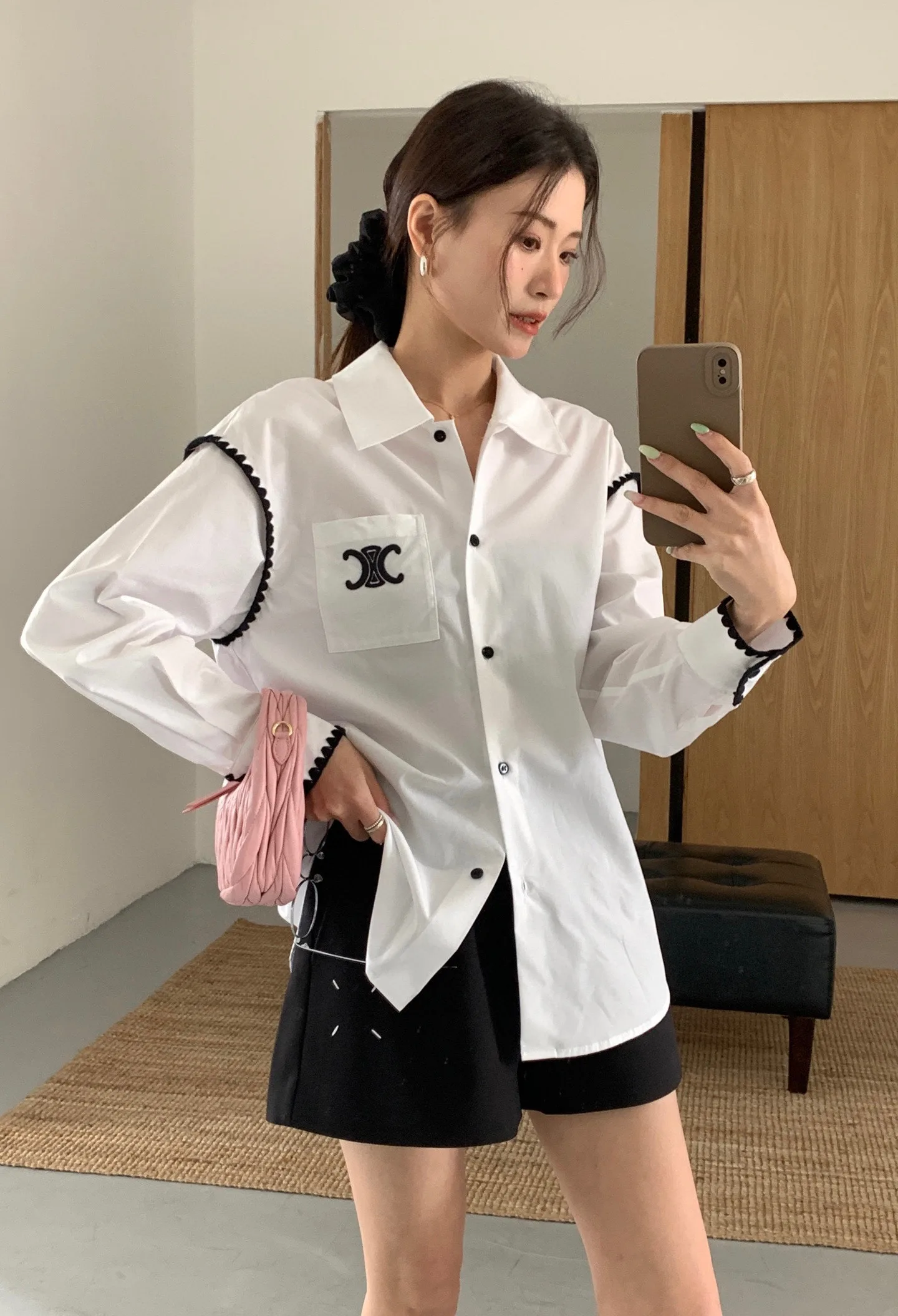 Hochwertiges Celine Hemd Weiß Bestickt Luxus